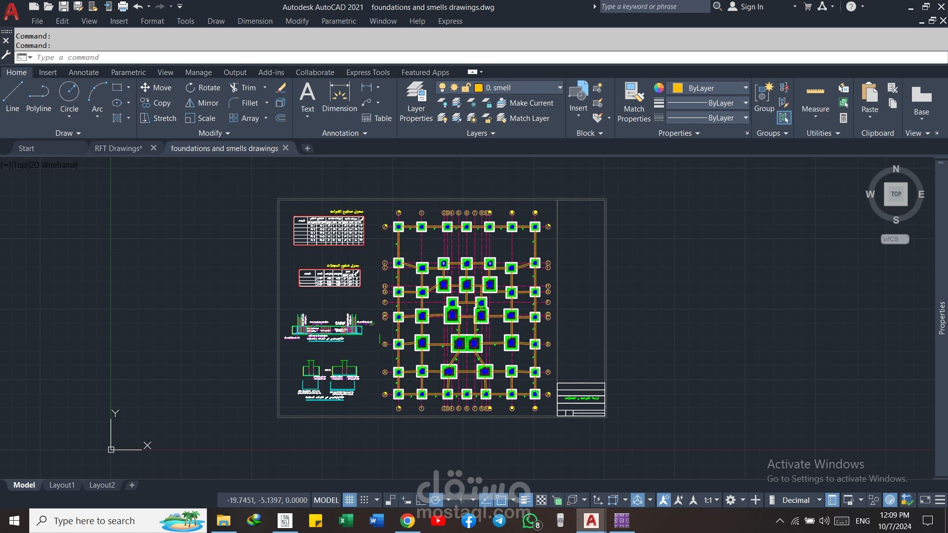 لوحة التسليح و الأبعاد الخرسانية للقواعد و السملات