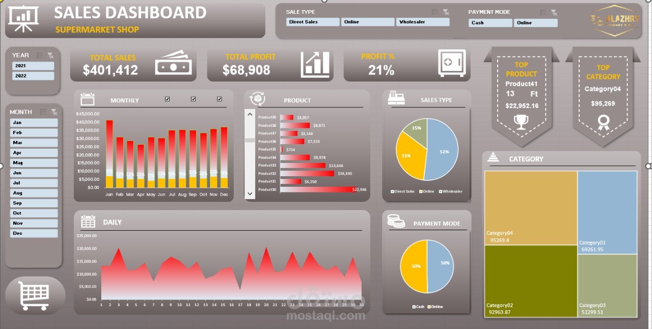 In this project, I collected, cleaned, and analyzed sales data for a supermarket using Excel. The project includes:
