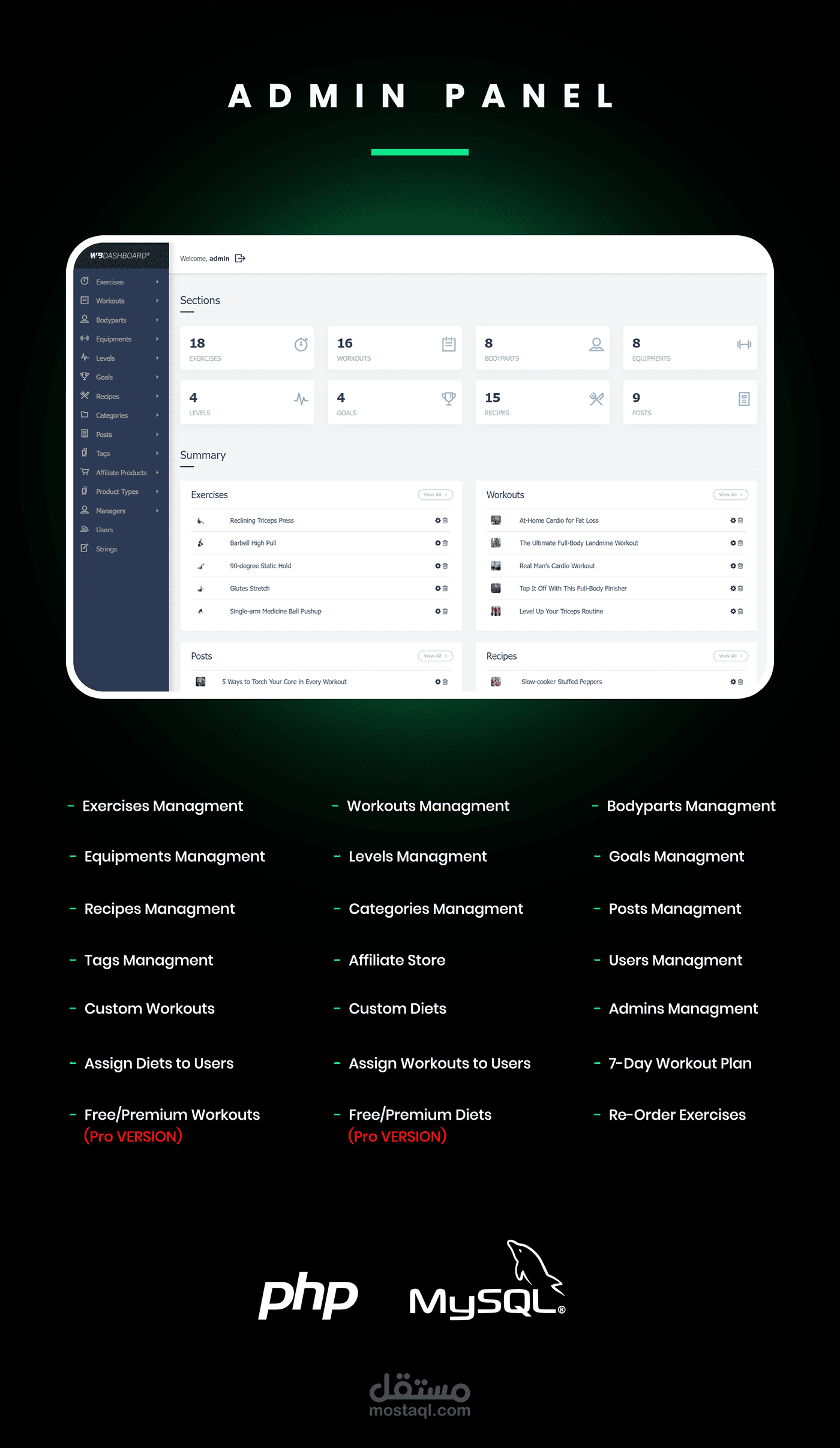 الإدارة الكاملة لمجموعة العضلات/أجزاء الجسم.
