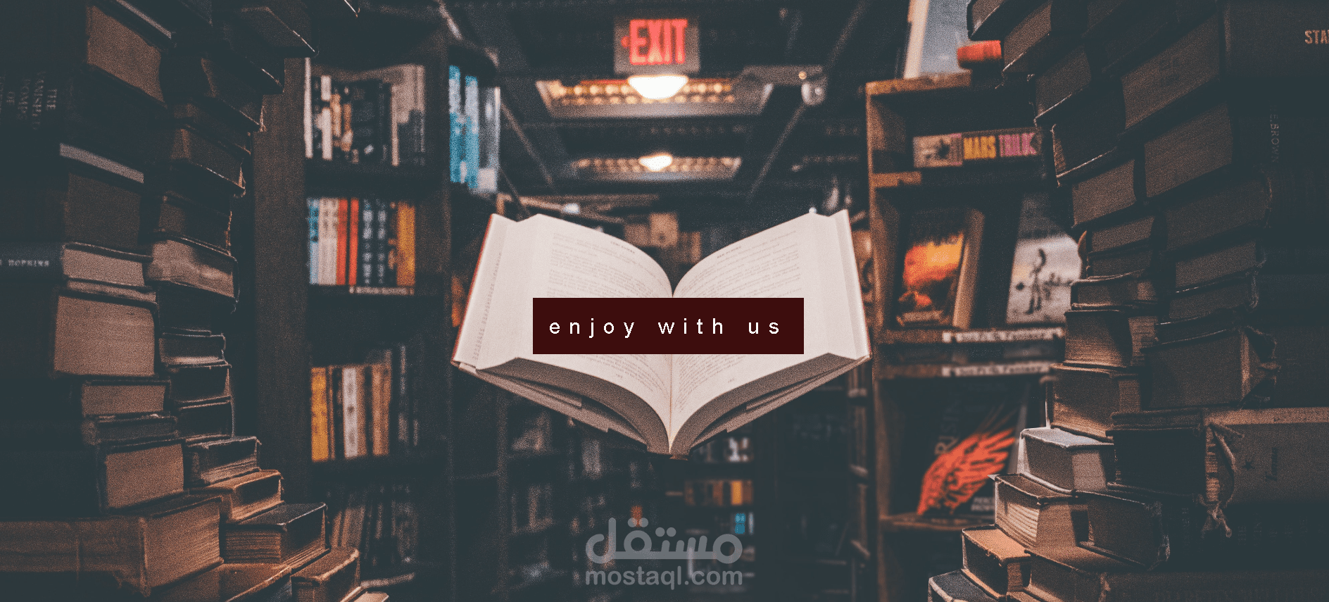 تحتوي على شعار في الزاوية العلوية، وقائمة تنقل (Navbar) تحتوي على روابط لصفحات الكتب الإنجليزية والعربية، وصفحة التسجيل وتسجيل الدخول.