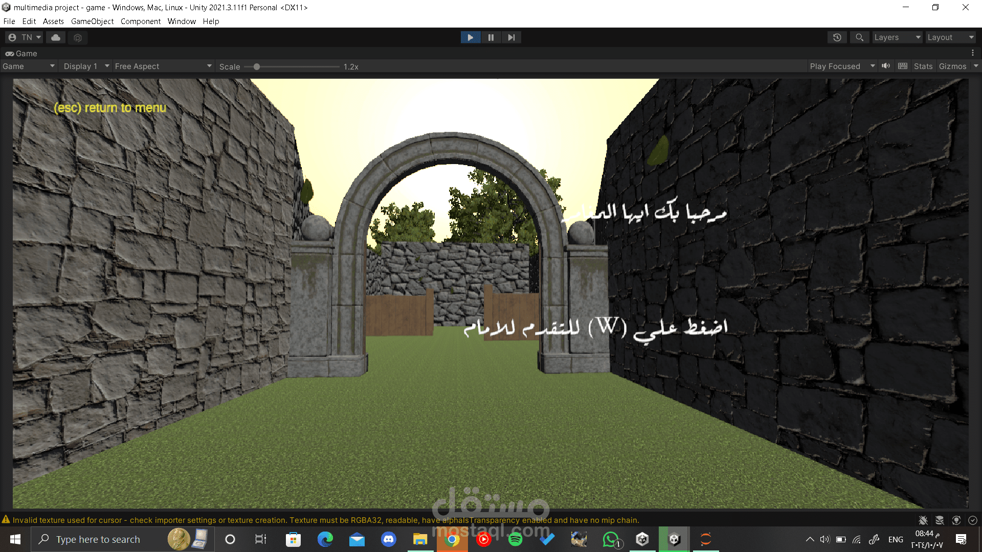تم إرفاق لقطات من Unity وبيئة البرمجة المستخدمة لتطوير اللعبة.