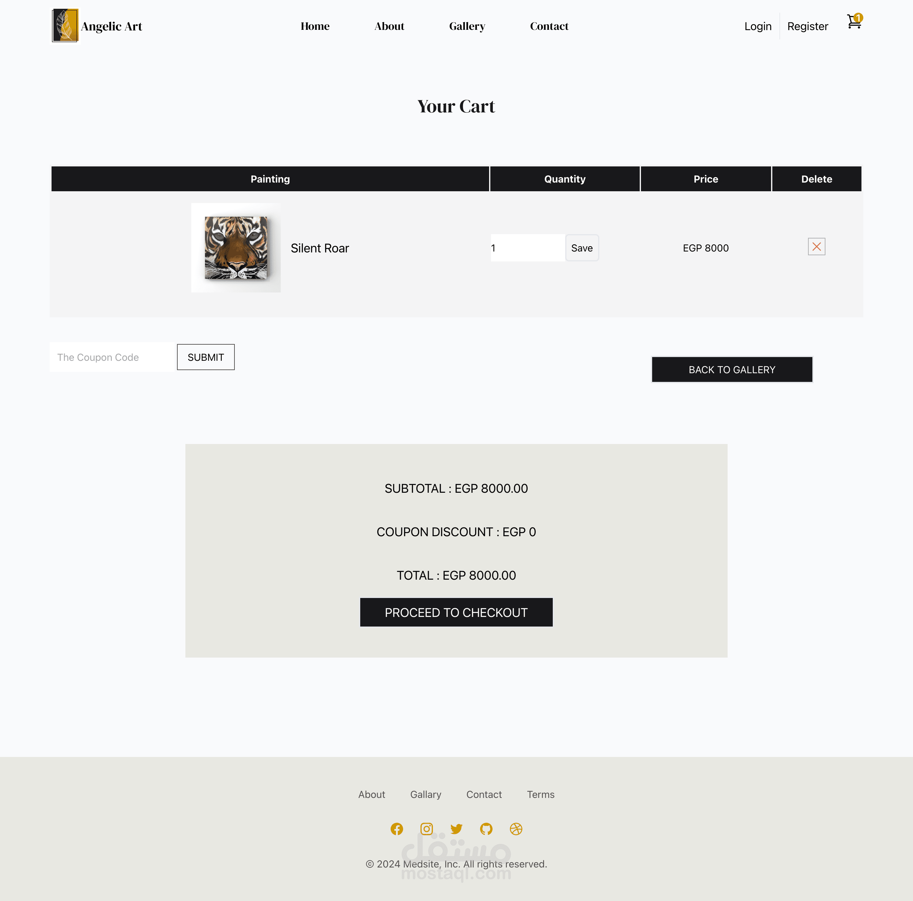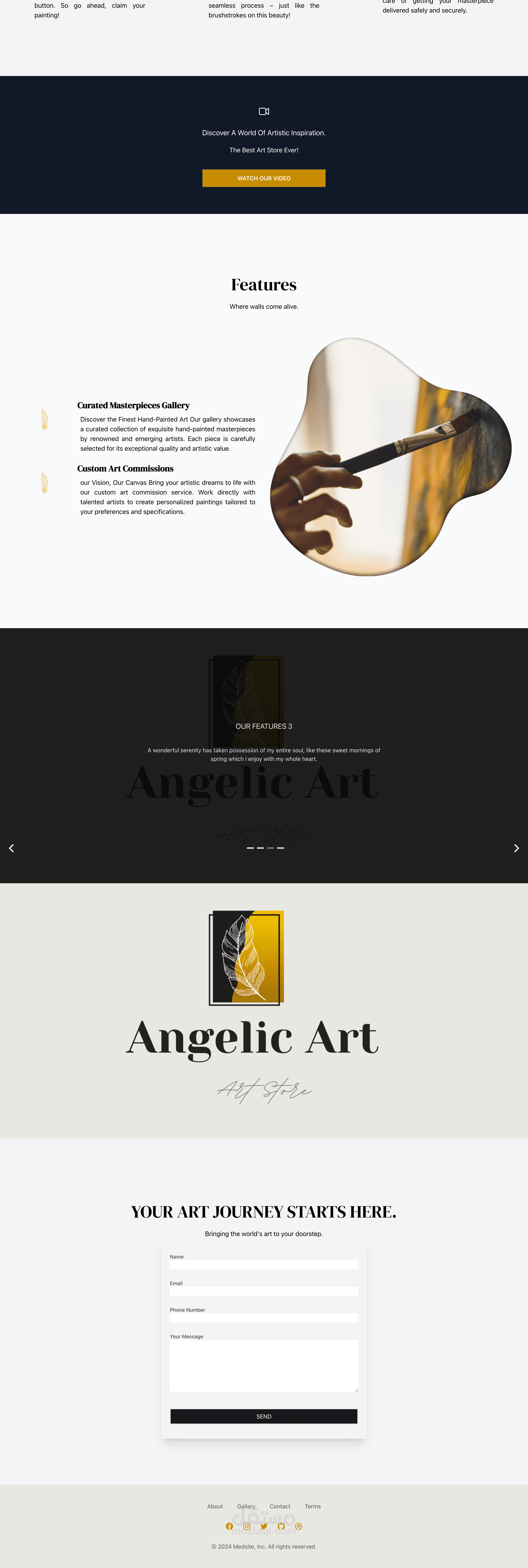 angelic art هو ويب ابليكيشين لجاليري لوحات مرسومة باليد ويسمح الموقع ببيع اللوحات (eccomerce) ومن خلال لوحة التحكم يمكن لصاحب الموقع التعديل علي كافة اجزاء الموقع من محتوي وصور وايقونات،كما يتيح له تتبع عملية الشراء وشحن اللوحات الي المشتري مع ارسال ايميلات الي المشتري لتتبع عملية شرائه.