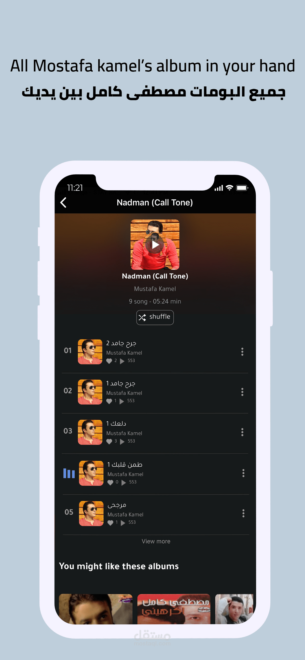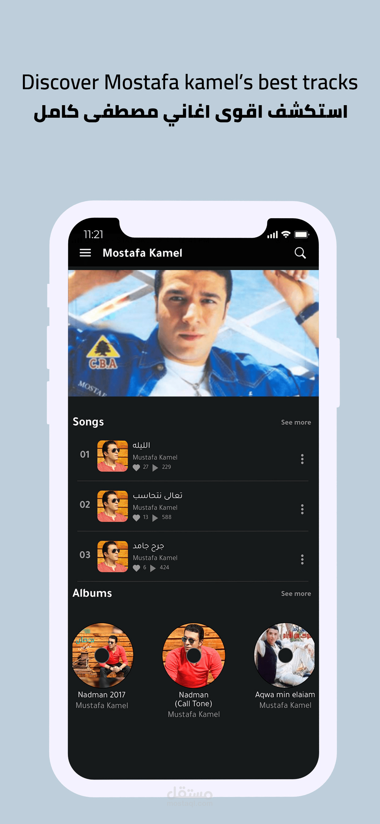 Now you can listen to all the songs for the artist Mustafa Kamel through the official application of the artist,You can also listen to all the albums of Mostafa Kamel and download photos and requested the presence of the artist Mostafa Kamel in private events