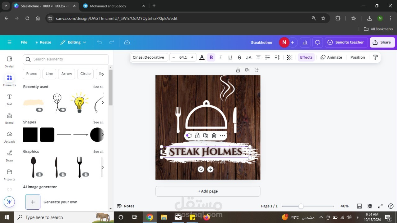 في هذا العمل استخدمت موقع canva لتصميم شعار لمطعم