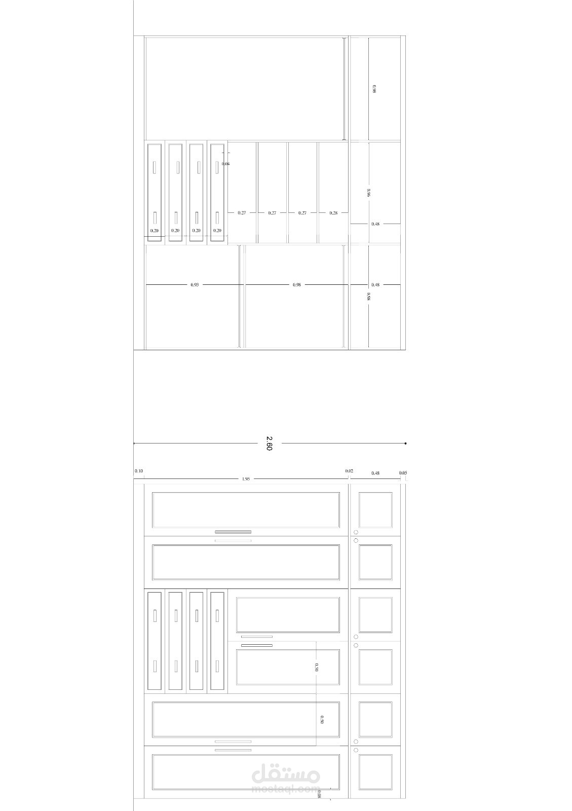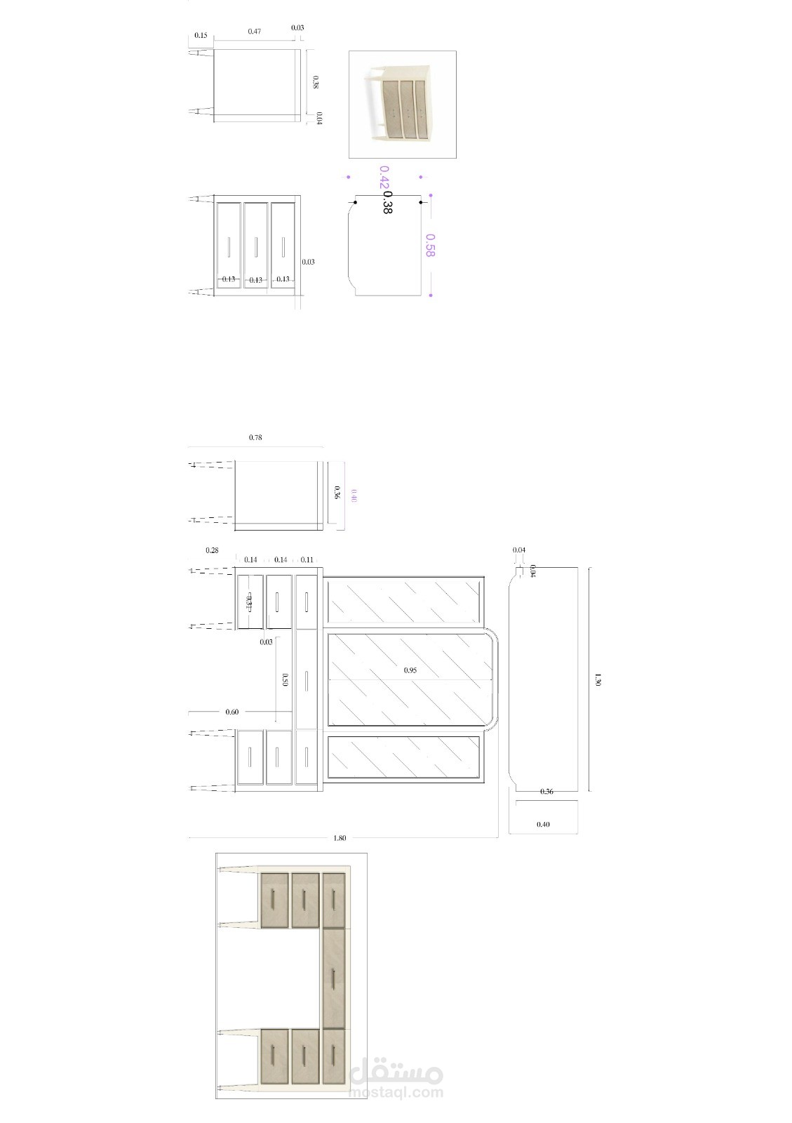 تم التصميم 2d باستخدام AutoCAD لريم القطع بالمقاسات المناسبة للغرفة