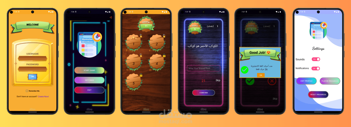 تطبيق يحتوي على مجموعة من الألغاز من مختلف الفئات يتم عرضها للمستخدم (اللاعب) على شكل مراحل متتالية، حيث يمكن للاعب من خلال هذا التطبيق ضمن تصفح مجموعة من الألغاز وتجربتها لحلها في فترة زمنية معينة تحصل على عدد معين من النقاط لكي تنتقل إلى مراحل أخرى وتكرر نفس العملية حتى نهاية الأسئلة والمراحل.