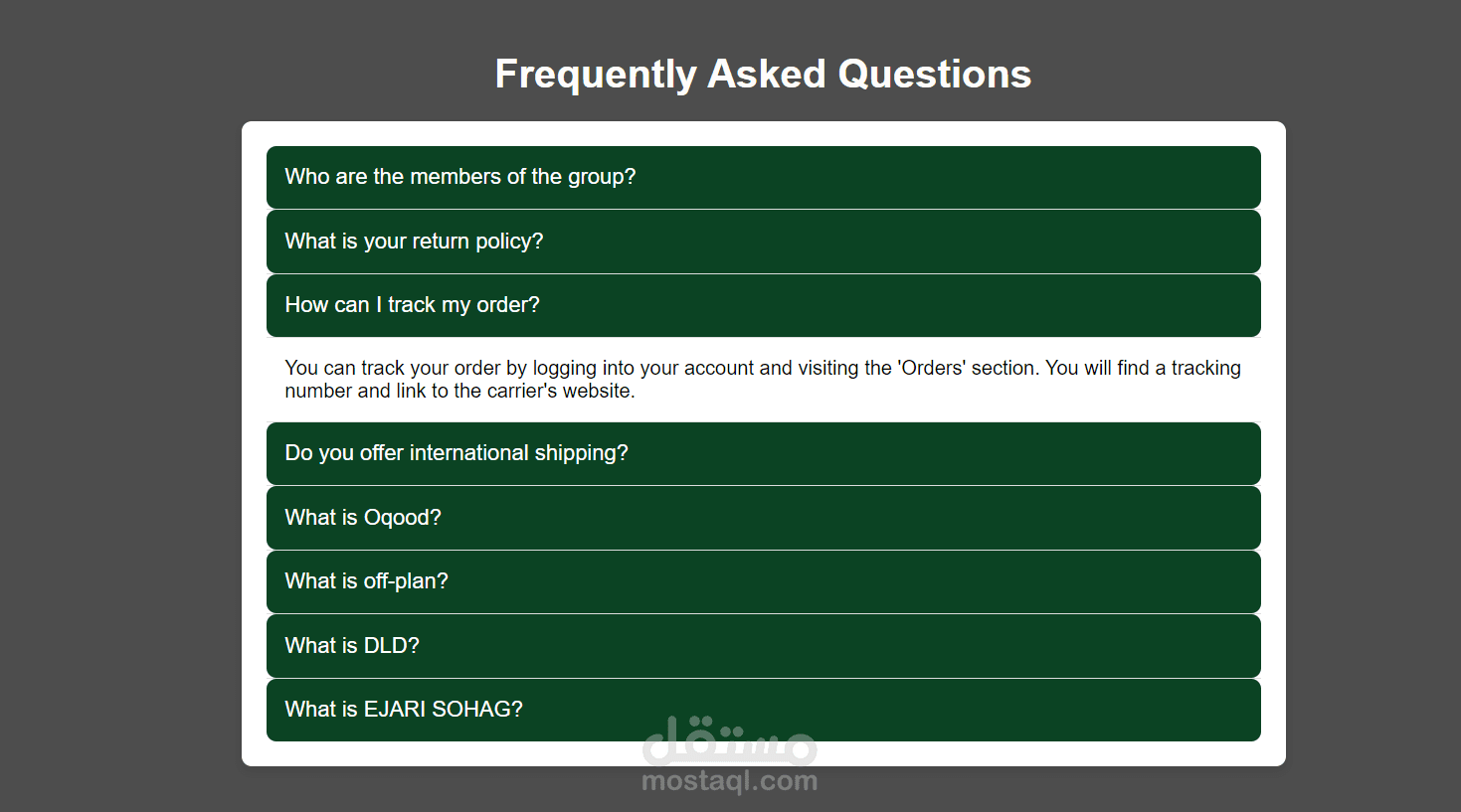 الواجهة الأمامية: HTML، CSS، JavaScript.