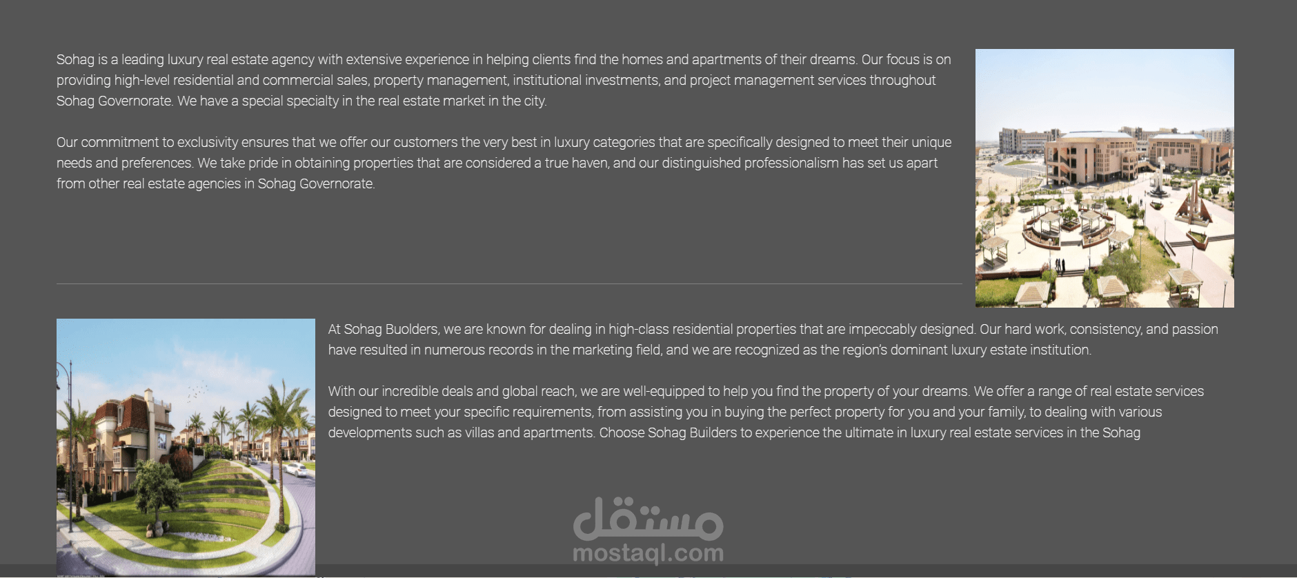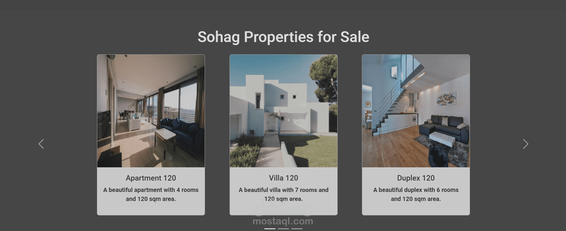 لوصف: موقع العقارات هو منصة إلكترونية مصممة لتسهيل عمليات شراء، بيع، وتأجير العقارات. يهدف هذا الموقع إلى تقديم تجربة مستخدم مريحة وفعّالة للمستثمرين والمشترين والمستأجرين، حيث يمكنهم العثور على العقارات المناسبة بسهولة، والتواصل مع الوسطاء، وعرض عقاراتهم الخاصة.