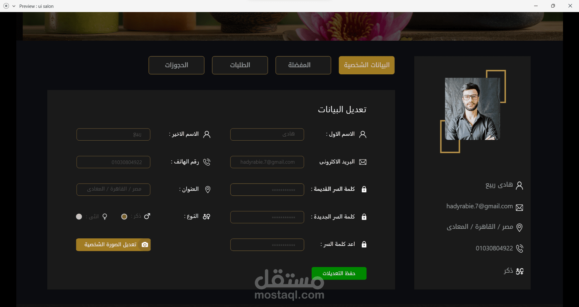 7- صفحة البيانات الشخصية