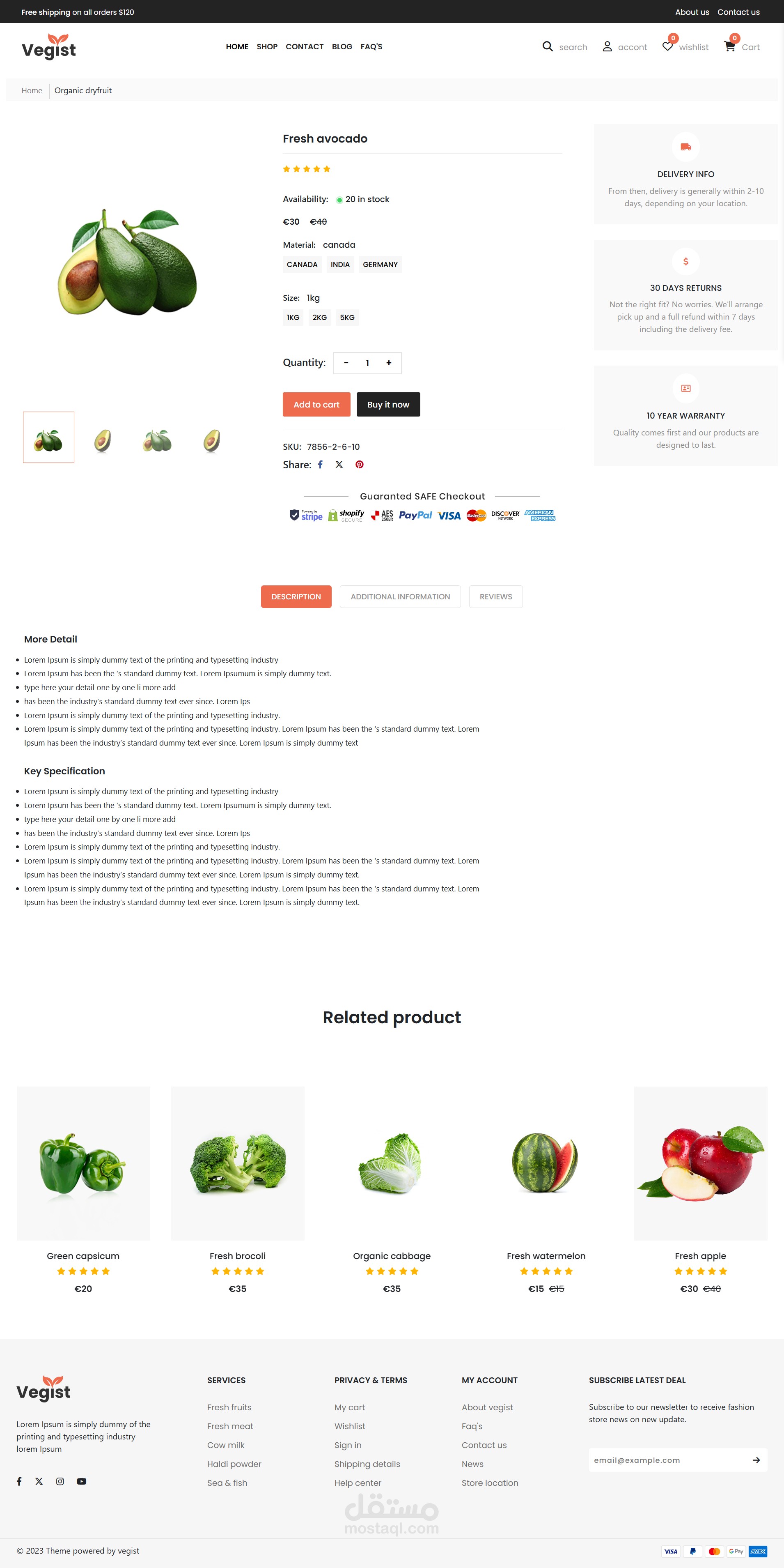 هذا المشروع عبارة عن موقع إلكتروني تجاري مخصص لبيع الخضروات والفواكه والألبان، حيث يهدف إلى تقديم تجربة تسوق مريحة وسلسة للمستخدمين. تم تصميم الموقع بطريقة جذابة وسهلة الاستخدام، مما يسهل على الزوار استعراض المنتجات وإجراء عمليات الشراء.