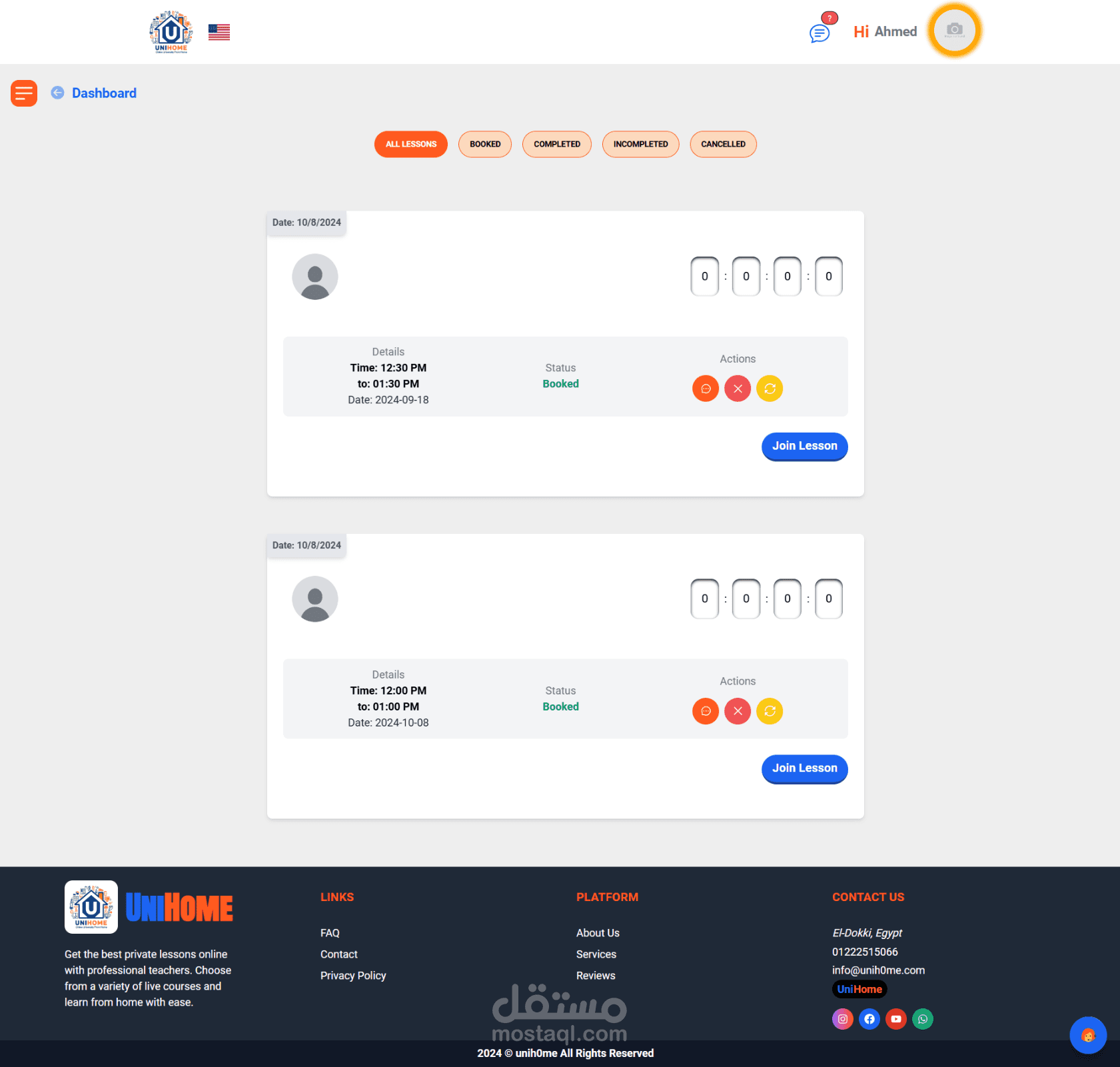واجهة مستخدم سهلة الاستخدام: تصميم متجاوب يسهل على الطلاب والمعلمين التنقل بين الدورات والمحتويات التعليمية.