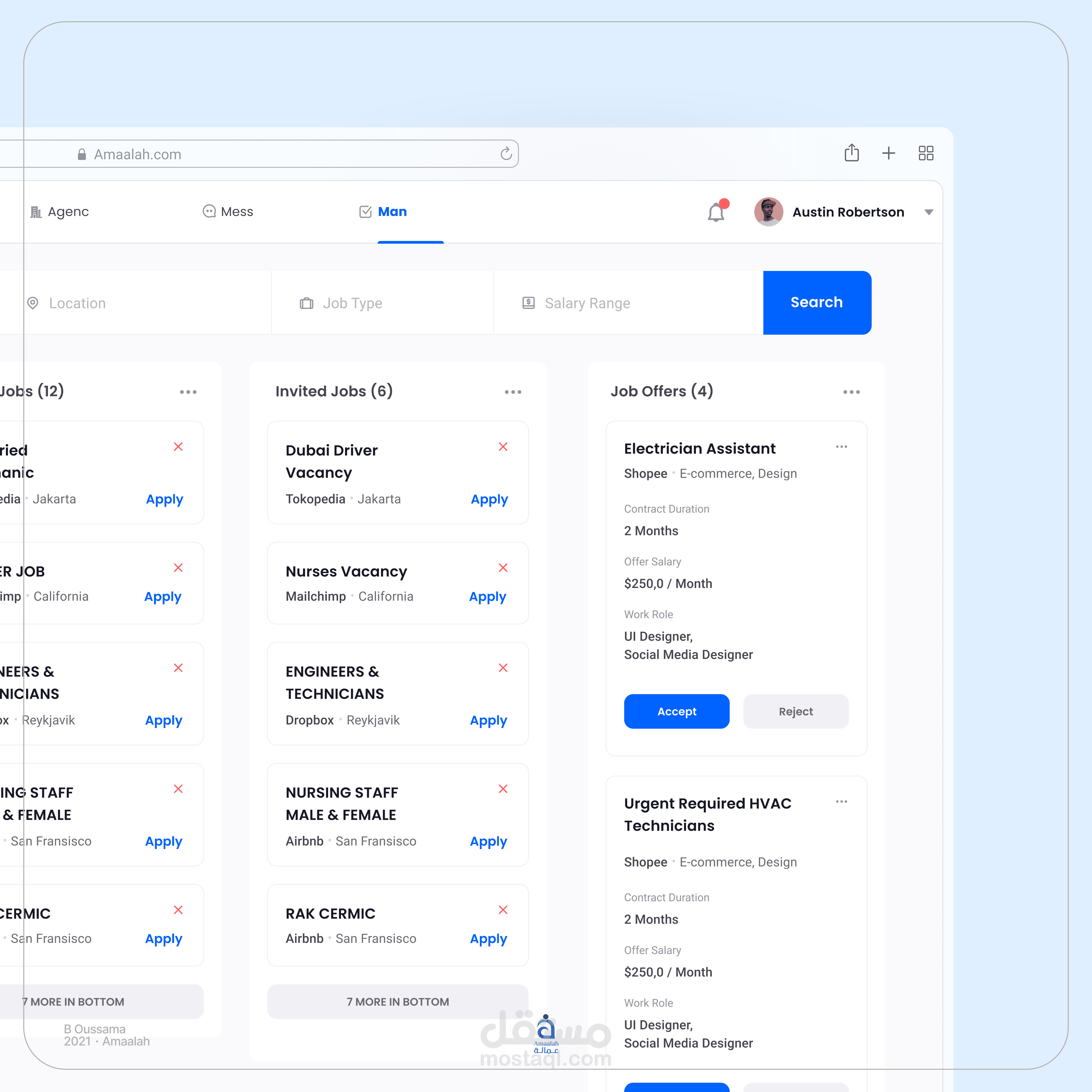 في “عمالة”، قمنا بتطوير تطبيق ويب ديناميكي للتوظيف يهدف إلى سد الفجوة بين أصحاب العمل، الباحثين عن عمل، ووكالات التوظيف. يقدم هذا التطبيق تجربة توظيف سلسة وفعالة لجميع الأطراف المعنية من خلال إنشاء نظام متكامل يتم فيه مطابقة الاحتياجات بدقة.