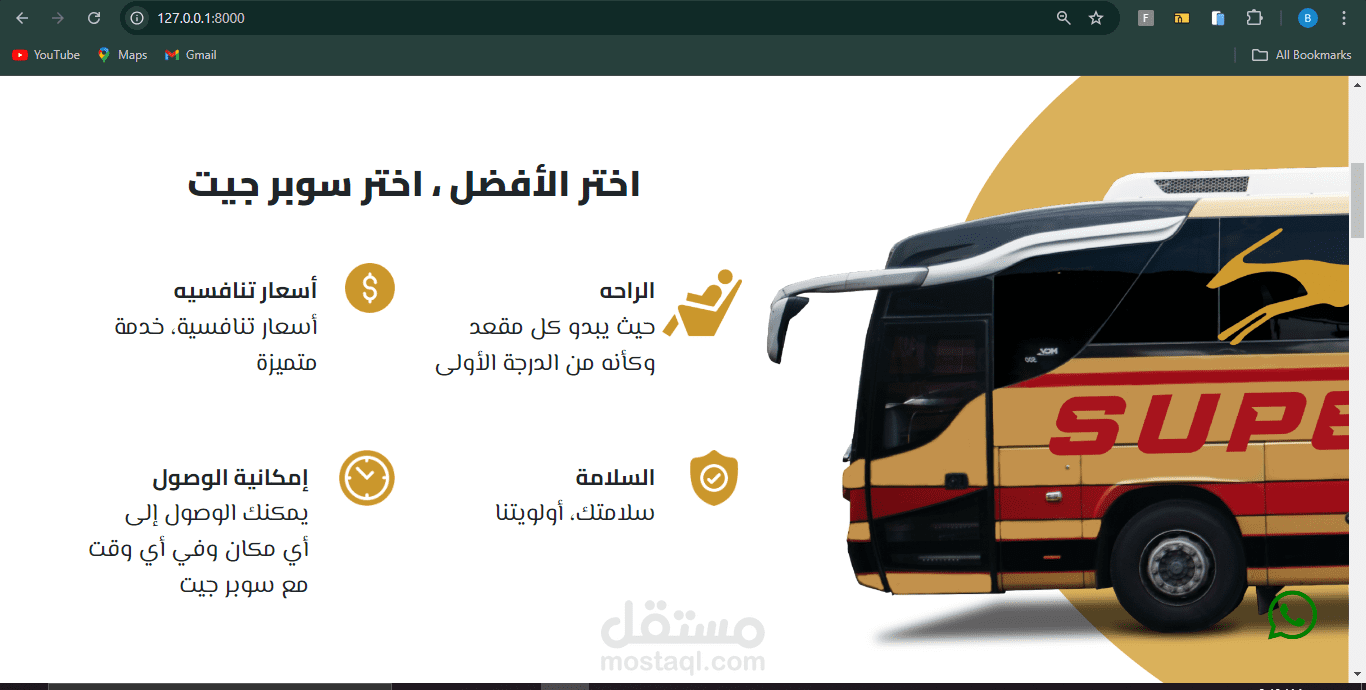 أنا أعمل على تطوير موقع ويب يساعد العملاء في اكتشاف الرحلات المتاحة للشركة، واختيار الرحلة الأنسب لهم، بالإضافة إلى اختيار المقعد المناسب.