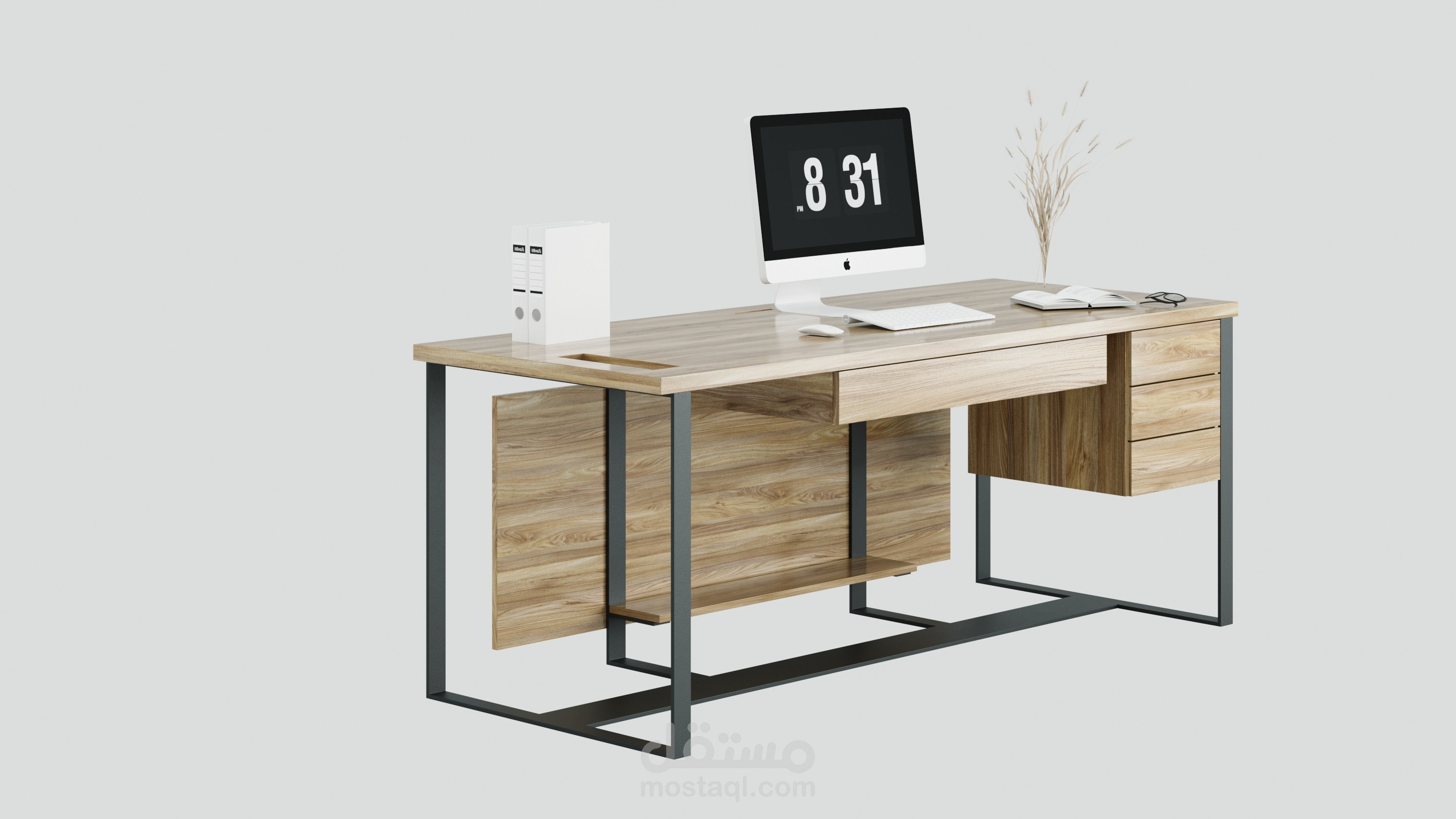 تصميم لمكتب بناء على طلب واحتياجات العميل من الخشب واحديد