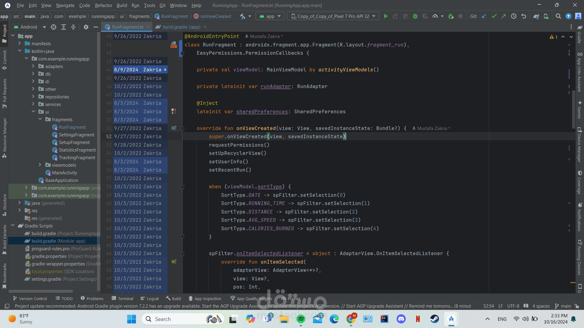 يقوم بفرز الجريات حسب التاريخ، السعرات الحرارية المحروقة، السرعة المتوسطة، المدة، والمسافة.