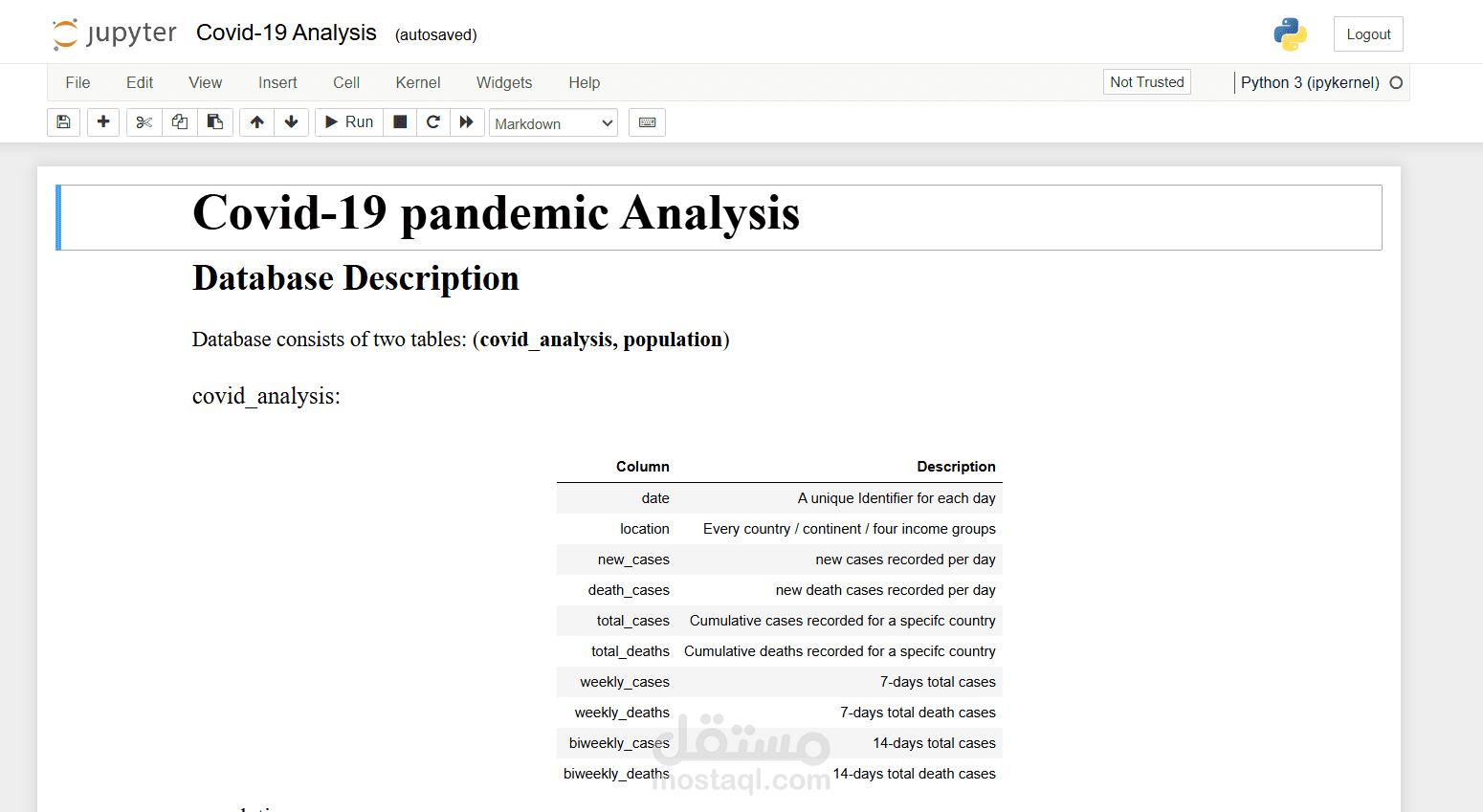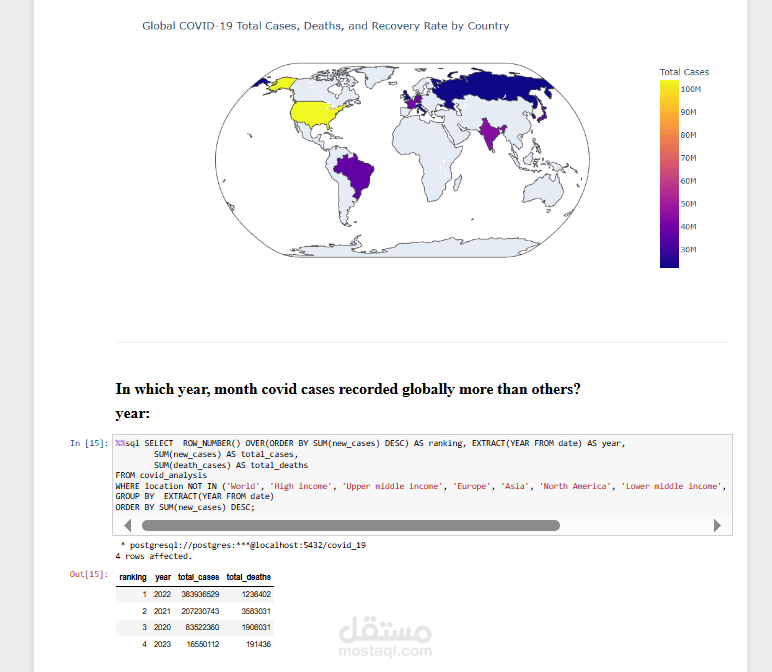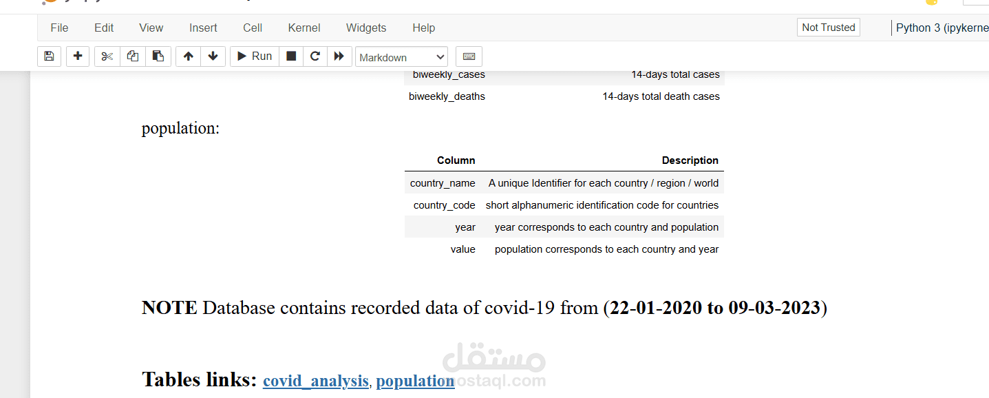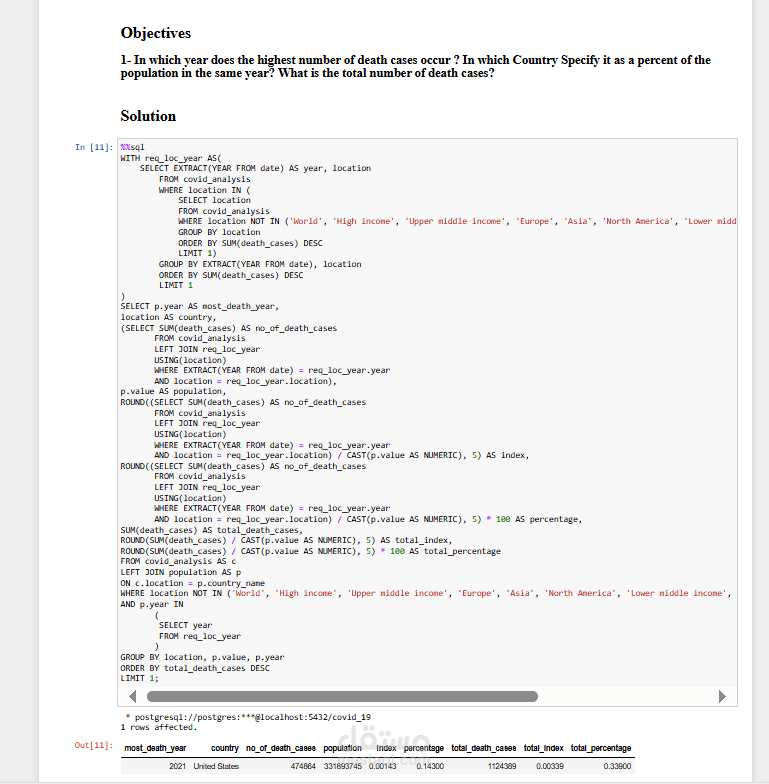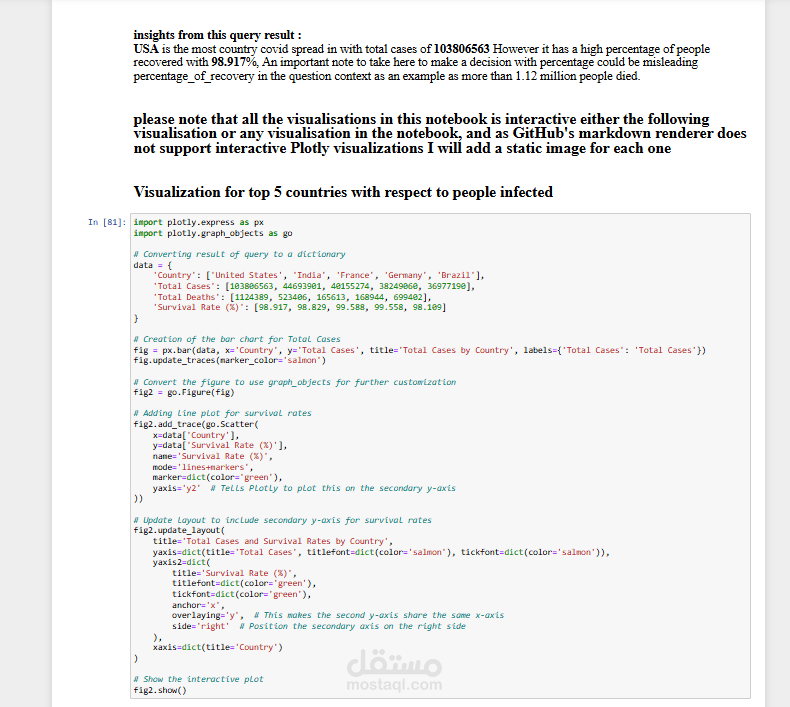 تم القيام بالبحث و تجميع البيانات من خلال مصادر مختلفة وموثوقة ثم فهم البيانات من خلال ربط 2 جدول و عمل تنظيف للبيانات باستخدام SQL ثم عمل تصوير للبيانات باستخدام matplotlib و ploty لايجاد العلاقات واستخدام الاحصاء ثم الاجابة على الاسألة واستخراج الرؤى