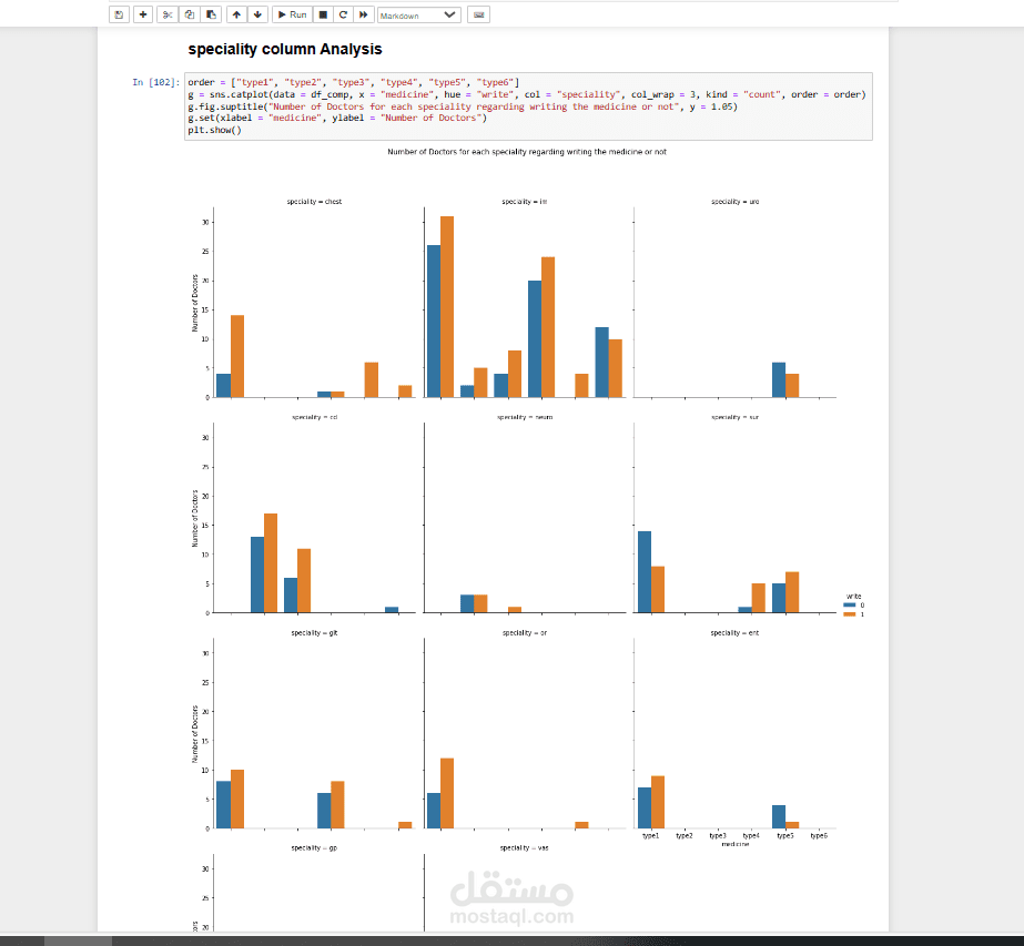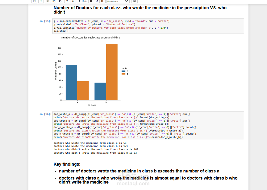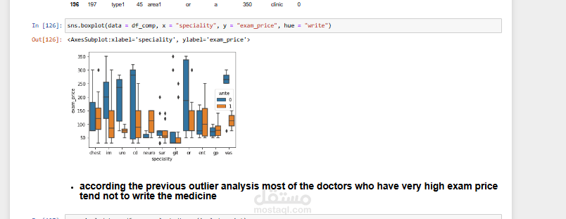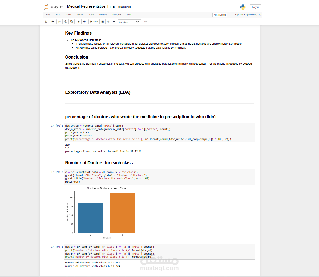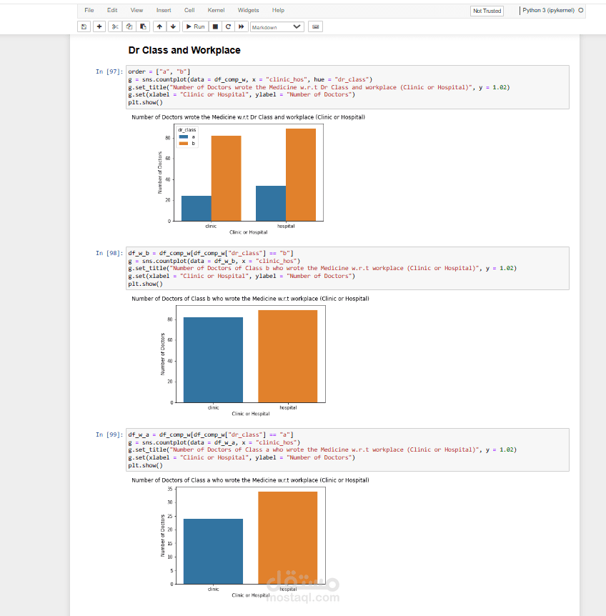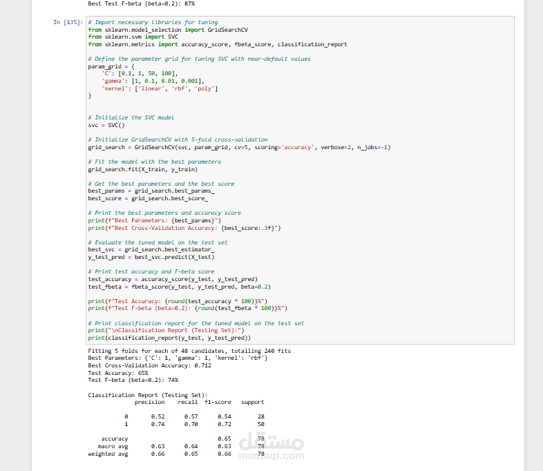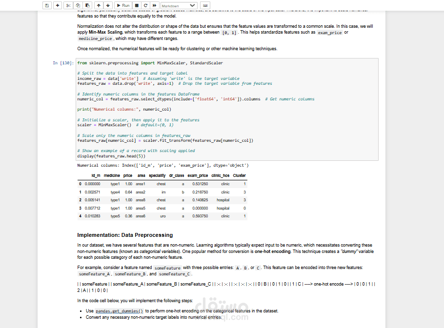 استخراج البيانات من قاعدة البيانات ثم عمل استكشاف للبيانات ثم دمج 2 جدول ثم تنظيف البيانات باستخدام pandas ثم عمل تصوير للبيانات باستخدام matplotlib و seaborn ثم تجهيز البيانات لعمل نموذج للتنبؤ بالحالة والوصول الى دقة تتجاوز 82%.