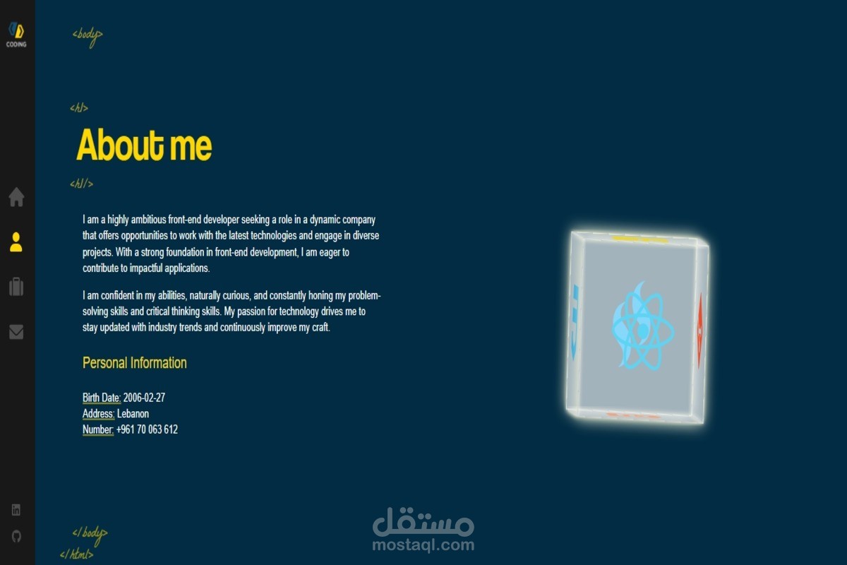سواء كنت مهتمًا بمشاهدة أحدث مشاريعي أو معرفة المزيد عني، فإن الموقع مصمم لعرض أعمالي بشكل فعال وجميل. اكتشف كيف يمكنني تحويل أفكارك إلى واقع!