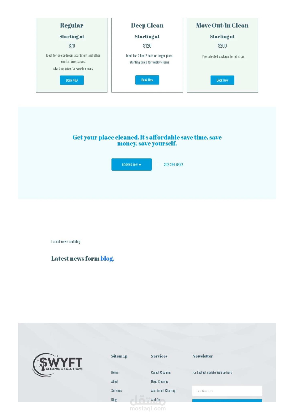 Website offering Cleaning services.