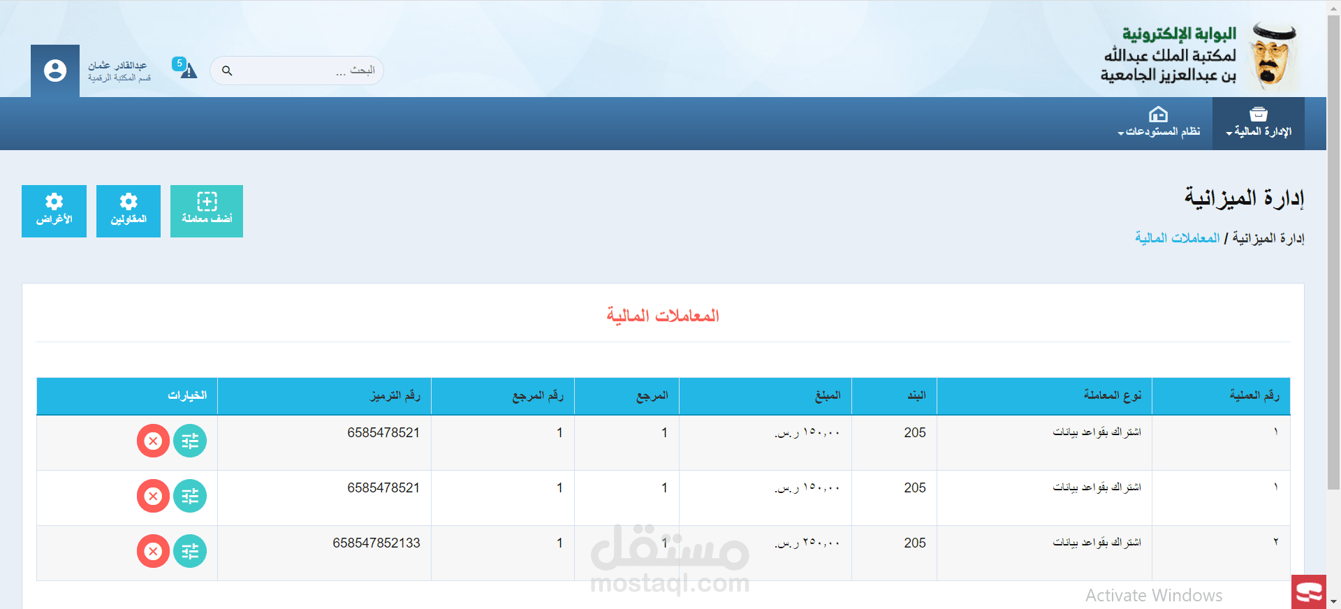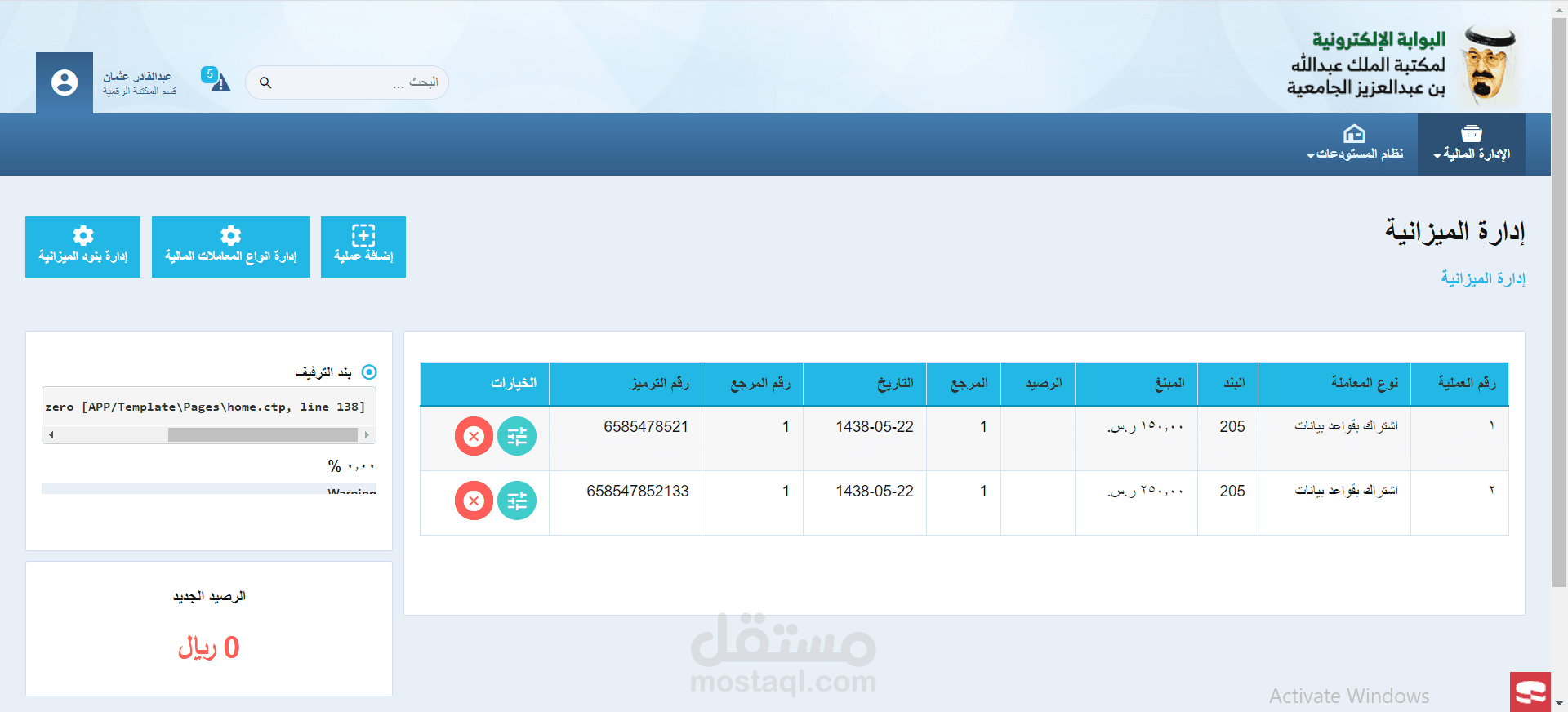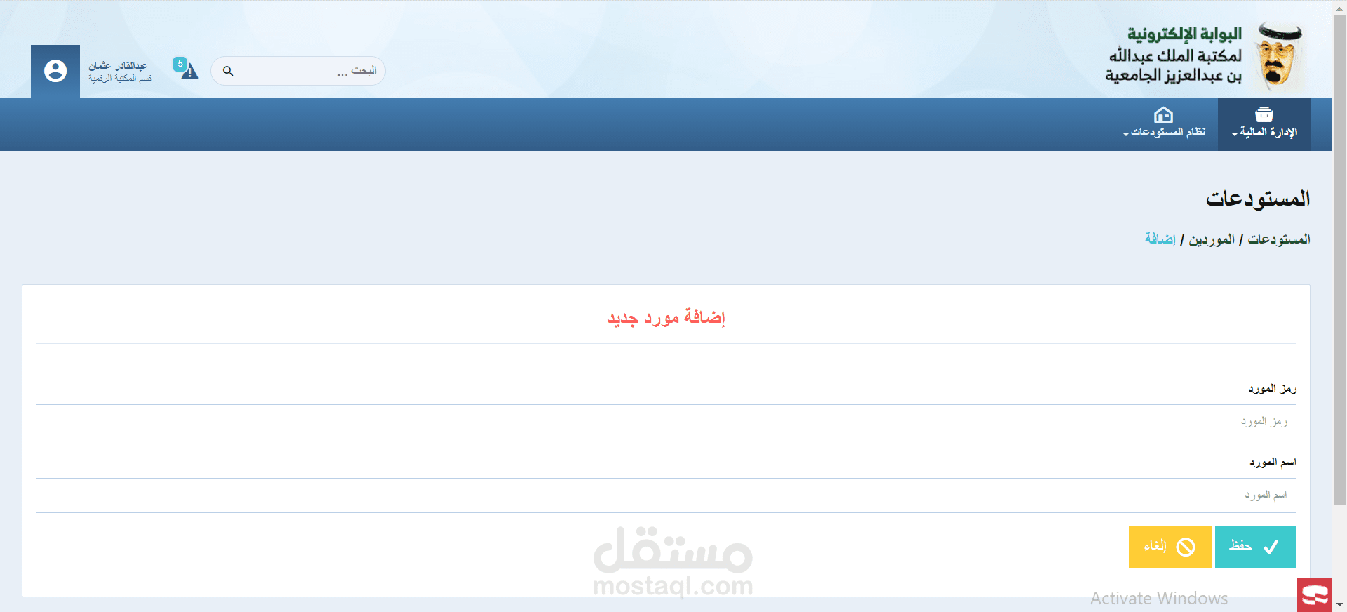 هو مشروع كبير لإدارة مكتبة الملك عبد الله ERP تشمل المعاملات المالية والكتب والموظفين والمستودعات والمخازن والهدايا وغيرها
