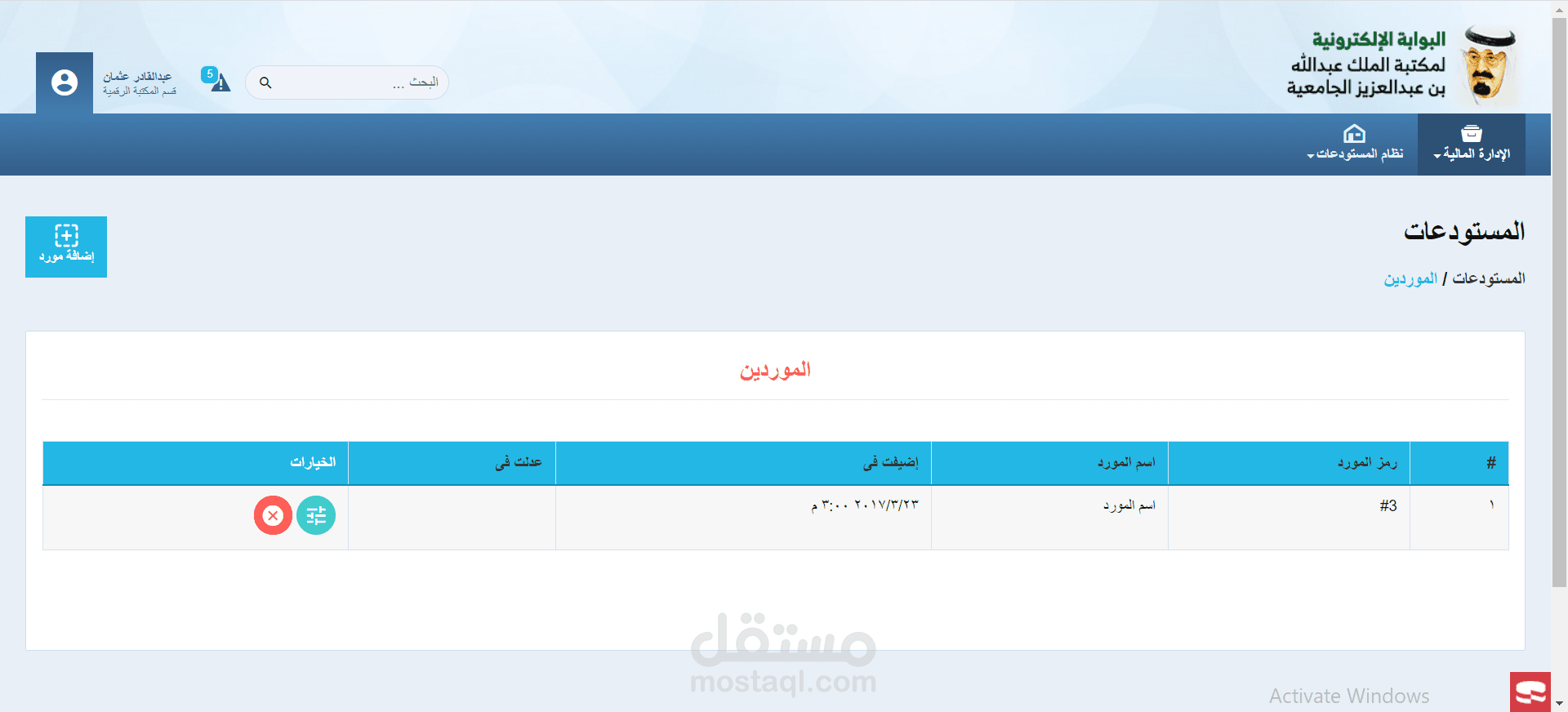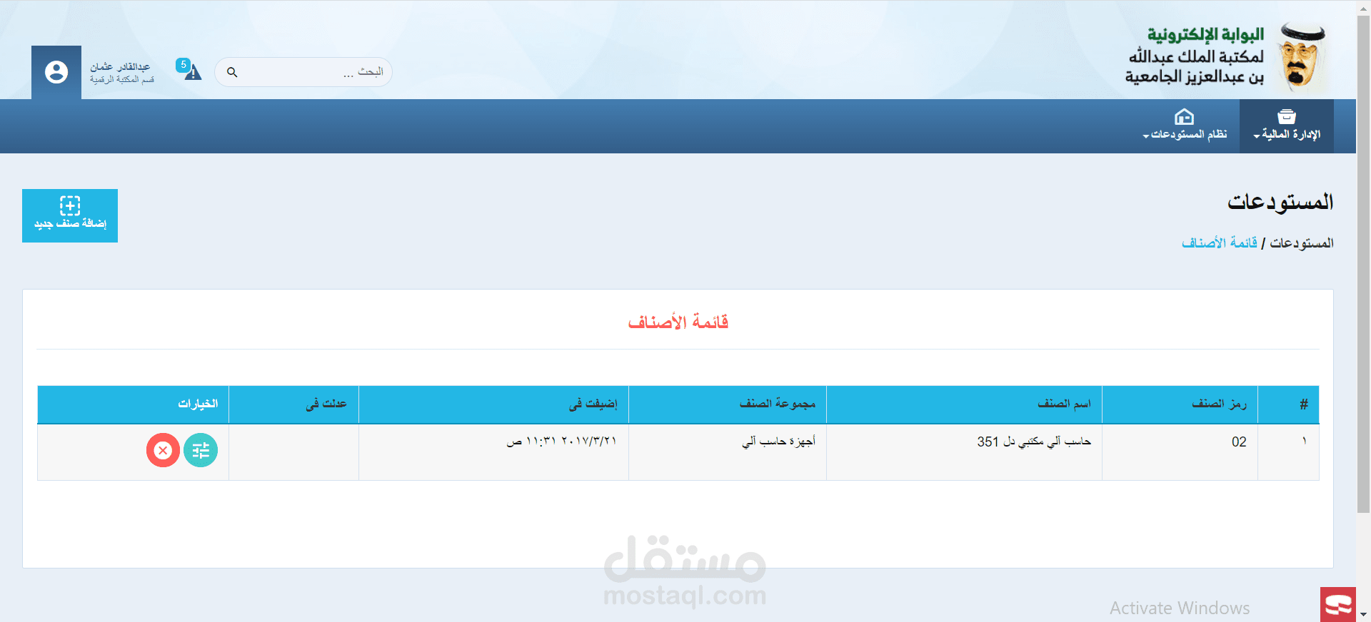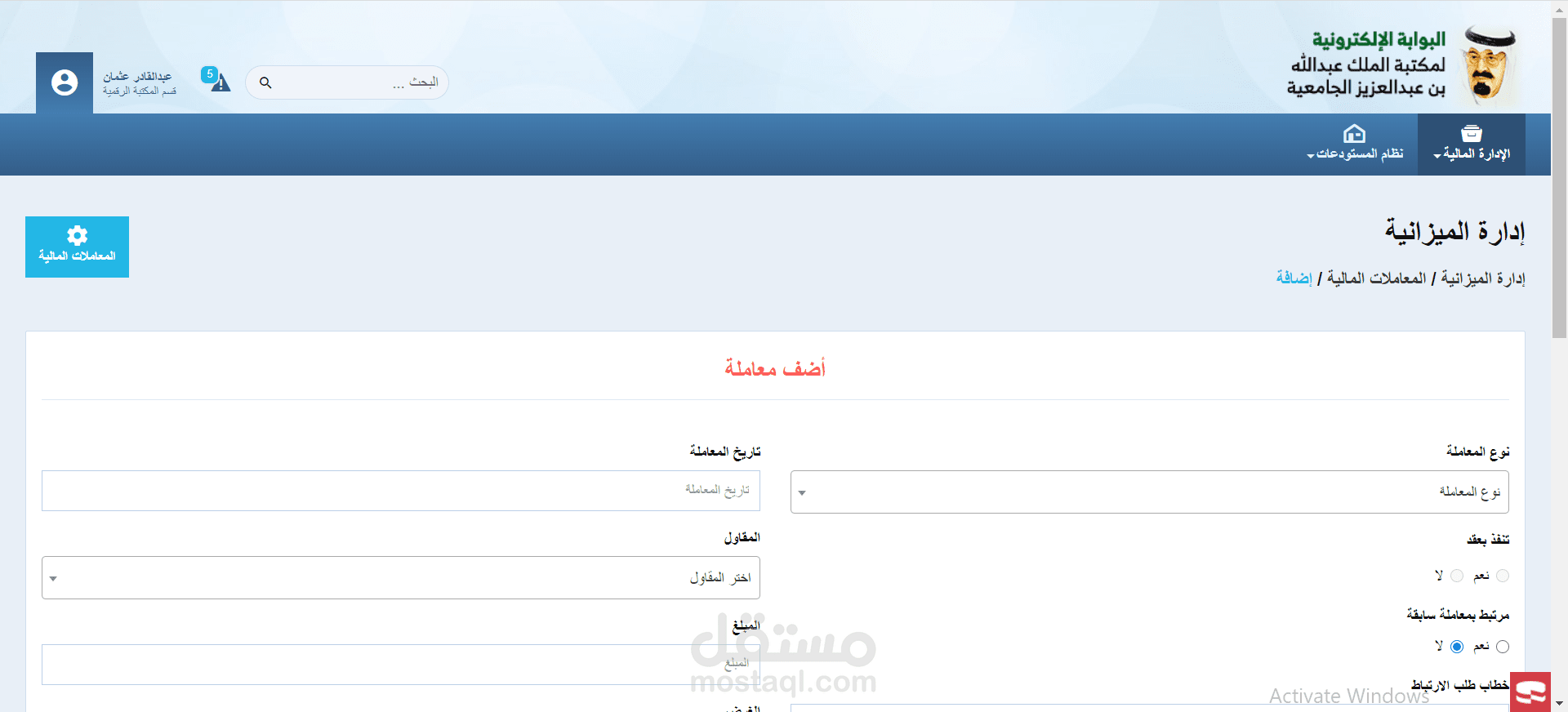 هو مشروع كبير لإدارة مكتبة الملك عبد الله ERP تشمل المعاملات المالية والكتب والموظفين والمستودعات والمخازن والهدايا وغيرها