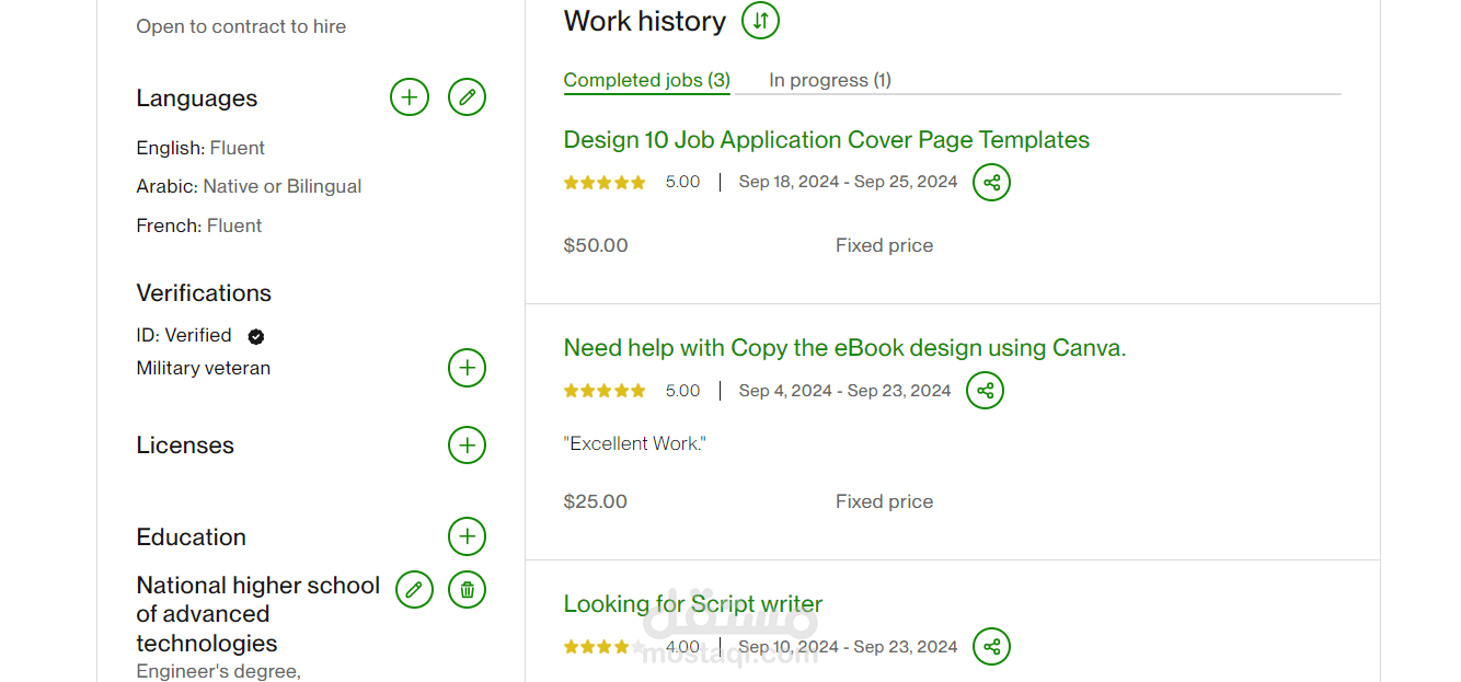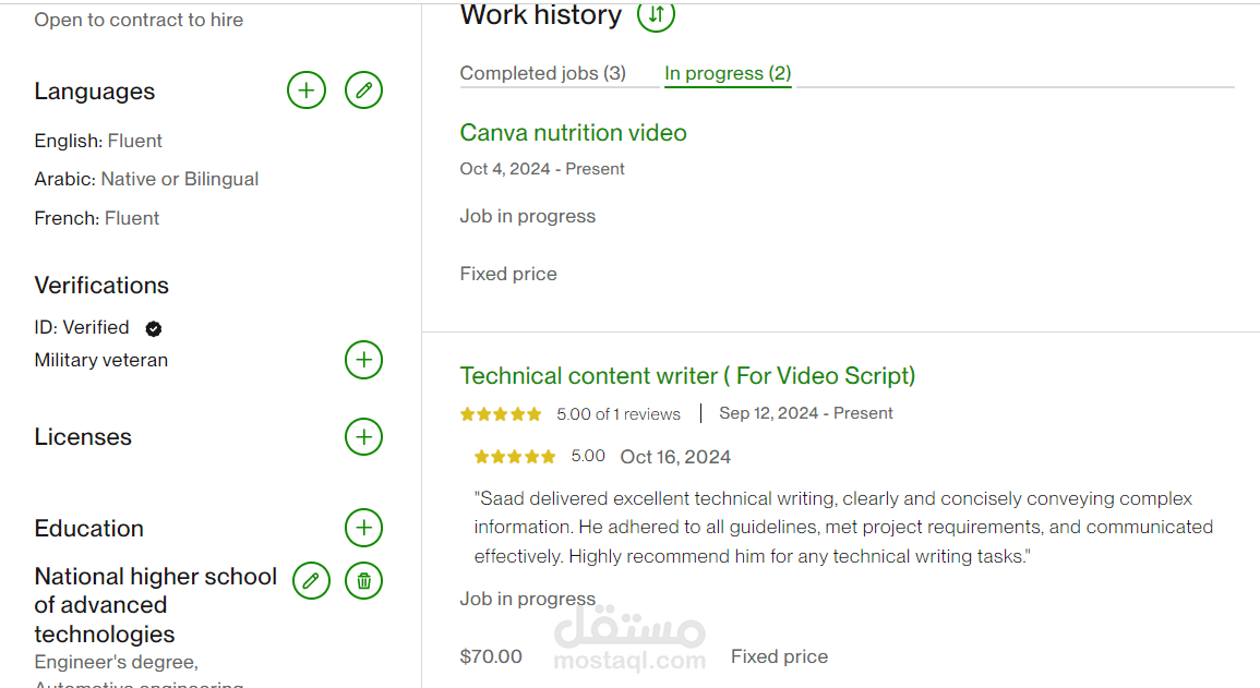 أكتب سيناريوهات باللغة الإنجليزية لقنوات يوتيوب، وقد حققت مقاطع الفيديو التي عملت عليها أكثر من 60 ألف مشاهدة في أقل من 10 أيام.