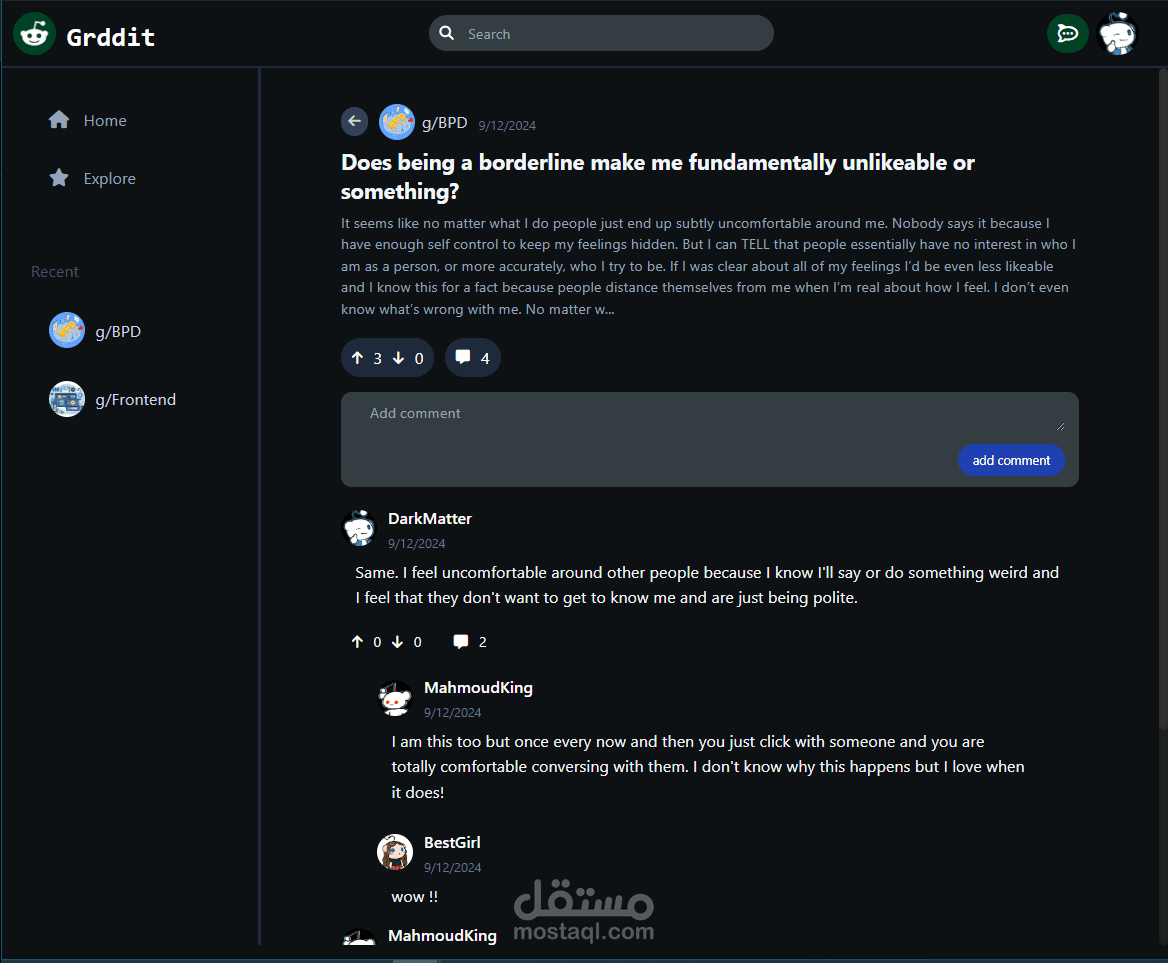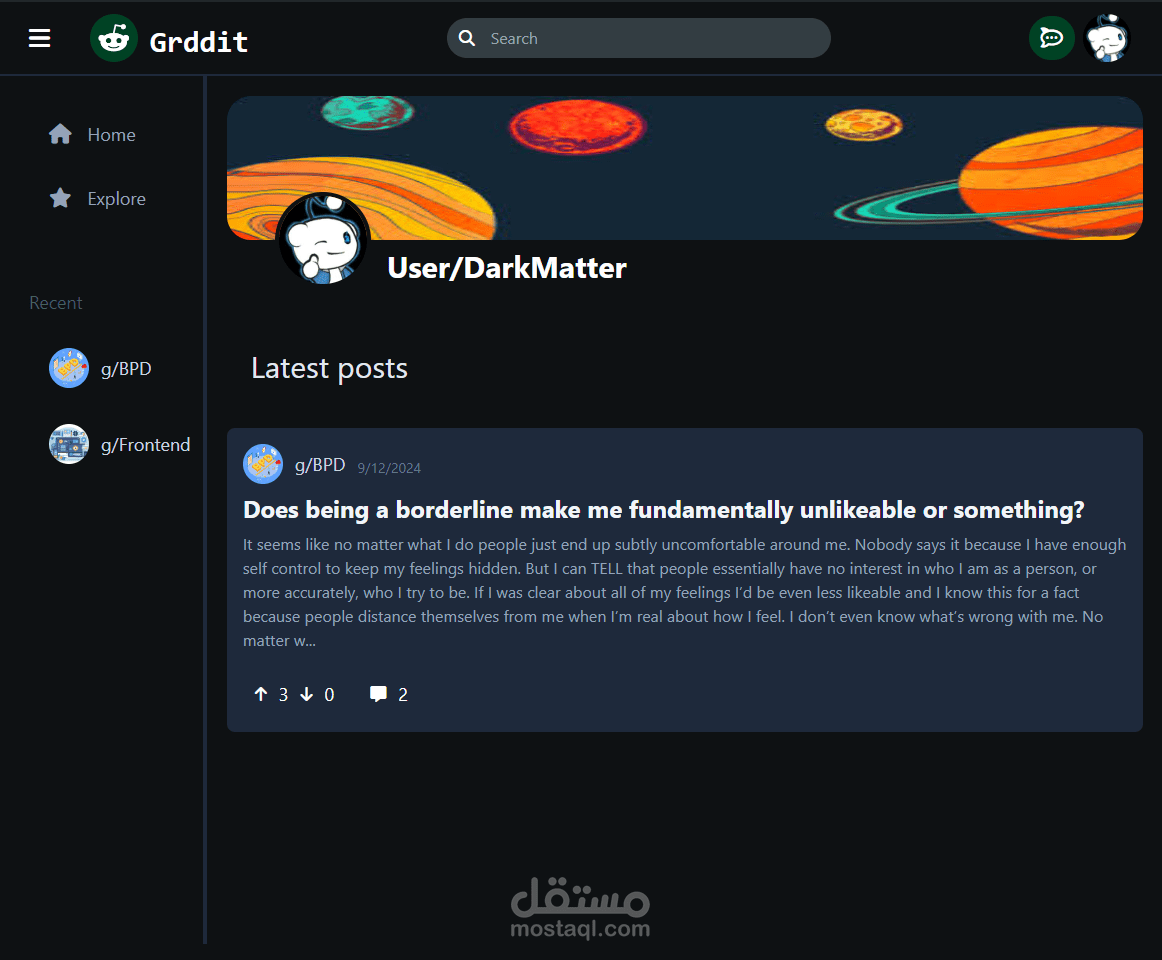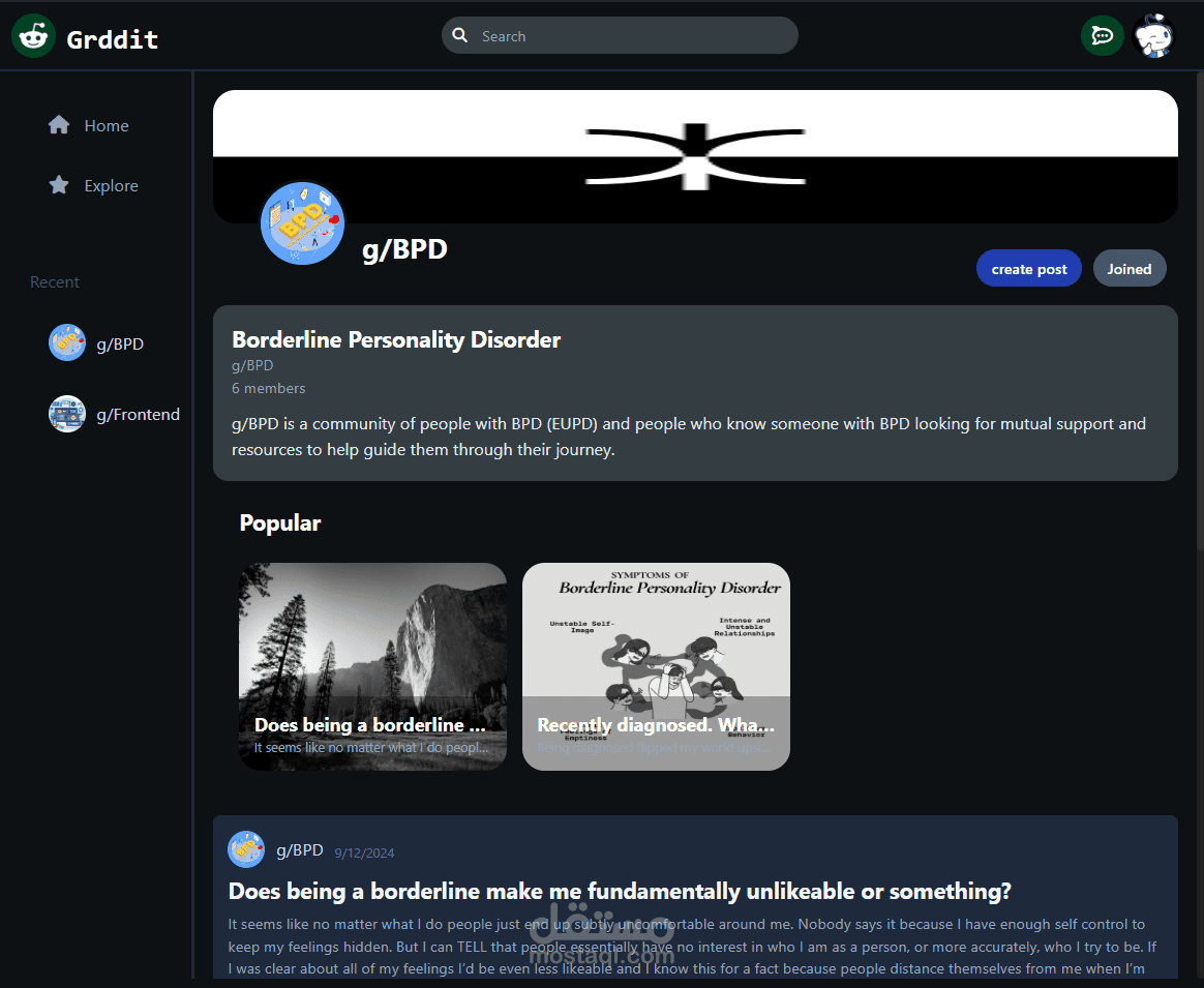 Griddit هو نسخة متماثلة من GitHub تحتوي على ميزات مثل مصادقة المستخدم، إنشاء الملفات الشخصية، إنشاء المشاركات والتعليقات، التصويت، الرسائل الفورية، والتمرير اللانهائي. يمكن للمستخدمين إنشاء مجموعات، الانضمام إلى المجتمعات، واستكشاف المحتوى.