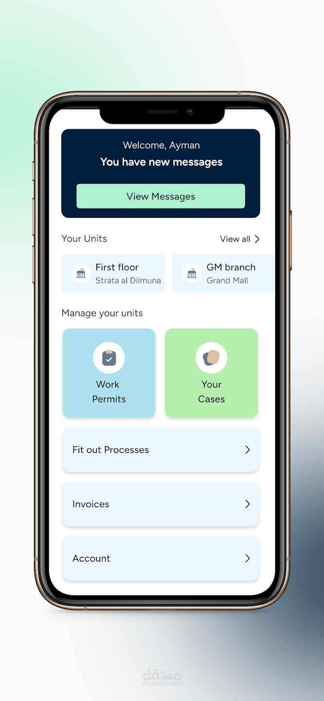 This application is a dashboard that was built as a solution for commercial malls that sell and rent their units, where the admin can create an account for the tenant or unit owner, an account on the application, so that the tenant can through it know and pay his bills or installments, create labor permits, or view a problem. Or request finishing work, and he can communicate with the management and respond to them, and many other features, all of this through the application.