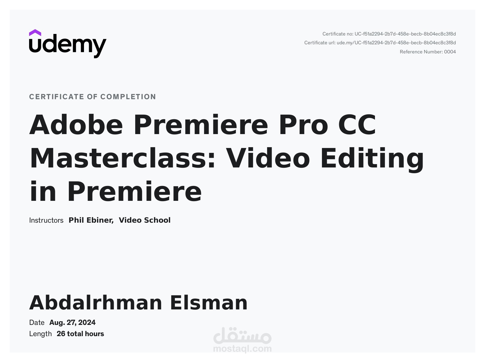 Masterclass في Adobe Premiere Pro – من منصة Udemy