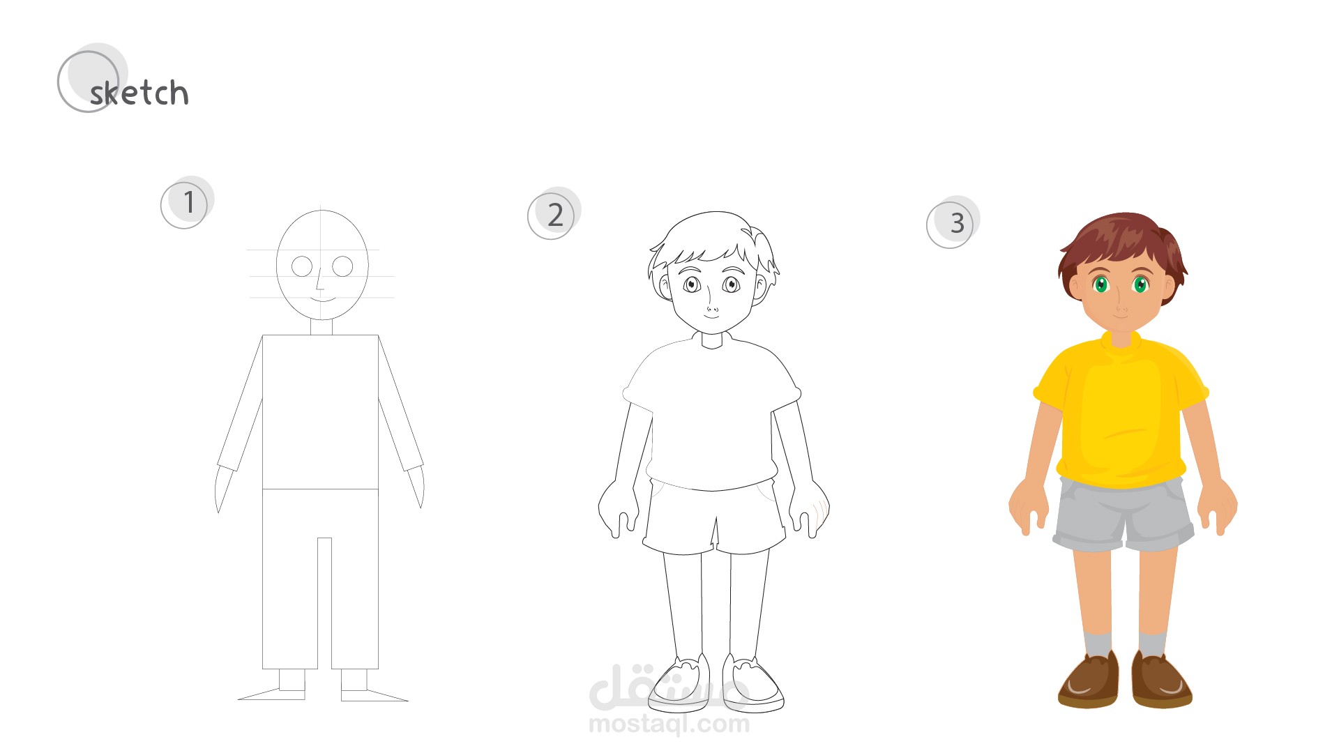 -رسم الكاركتر بجميع الاتجاهات من الامام والخلف والجانب بزاوية 2\3