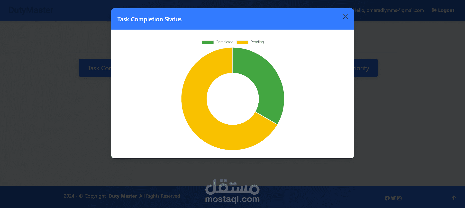 يتيح النظام تتبع حالة المهام (المكتملة والمعلقة)، باستخدام أدوات تصوير رسومية مثل Chart.js أو D3.js لعرض تقدم المهام بوضوح.