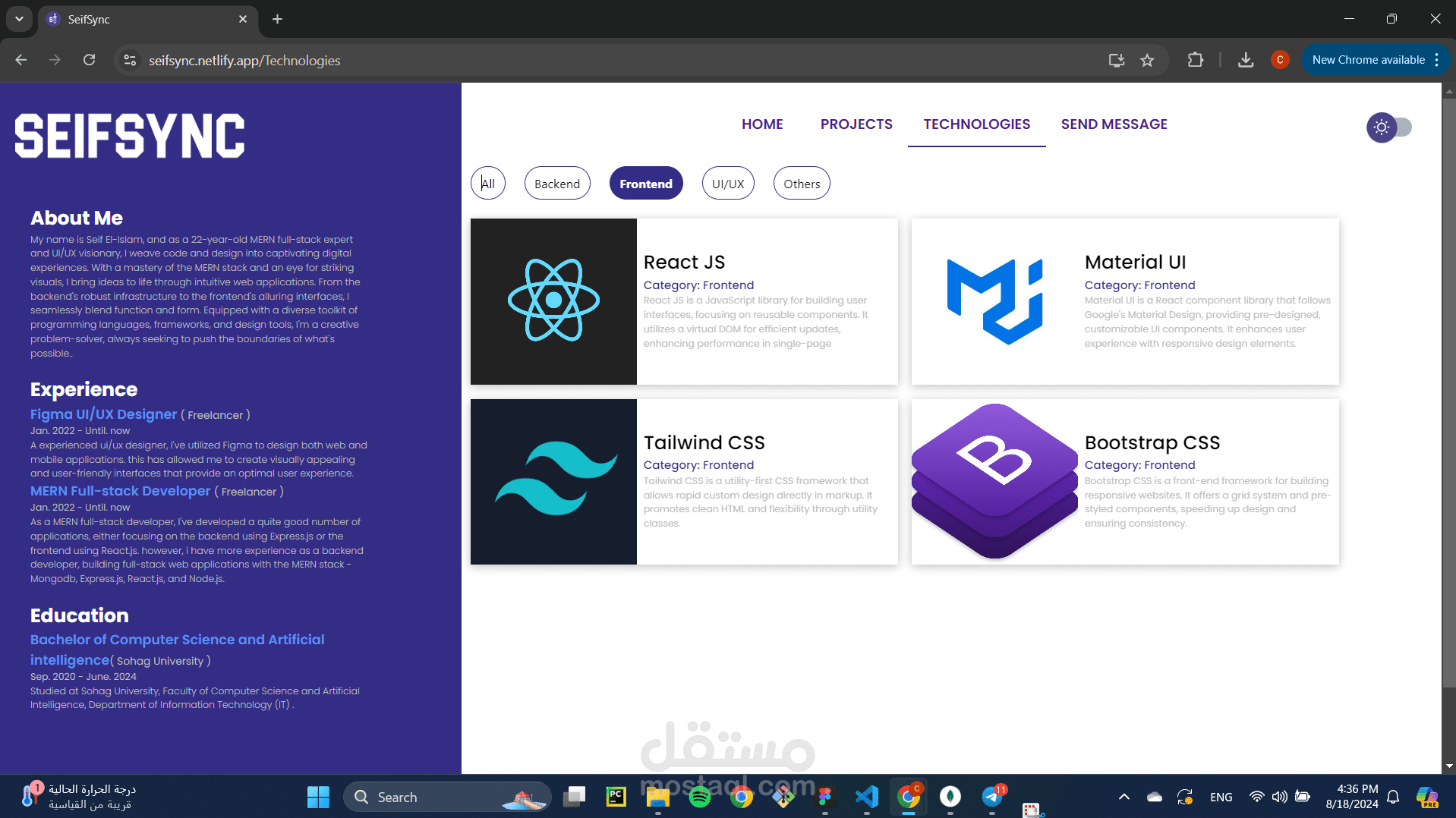 من خلال SeifSync، لم أعمل على تحسين مهاراتي التقنية فحسب، بل أيضًا عرضت إبداعي وقدراتي في حل المشكلات.