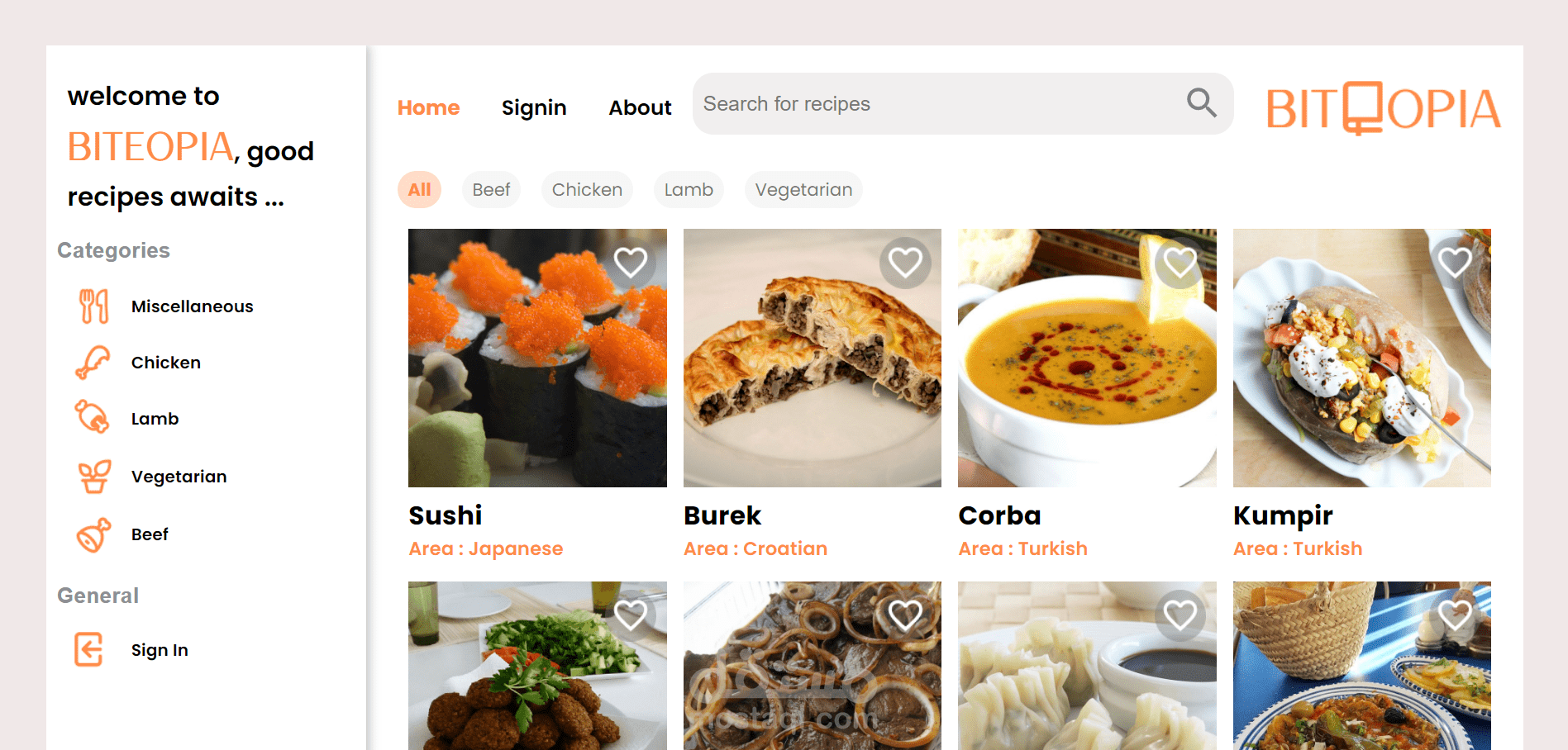 بصفتي مطور MERN ومصمم واجهات المستخدم وتجربة المستخدم، يسعدني أن أقدم لكم إنشائي الجديد — Biteopia، موقع وصفات ديناميكي مصمم لعشاق الطعام!