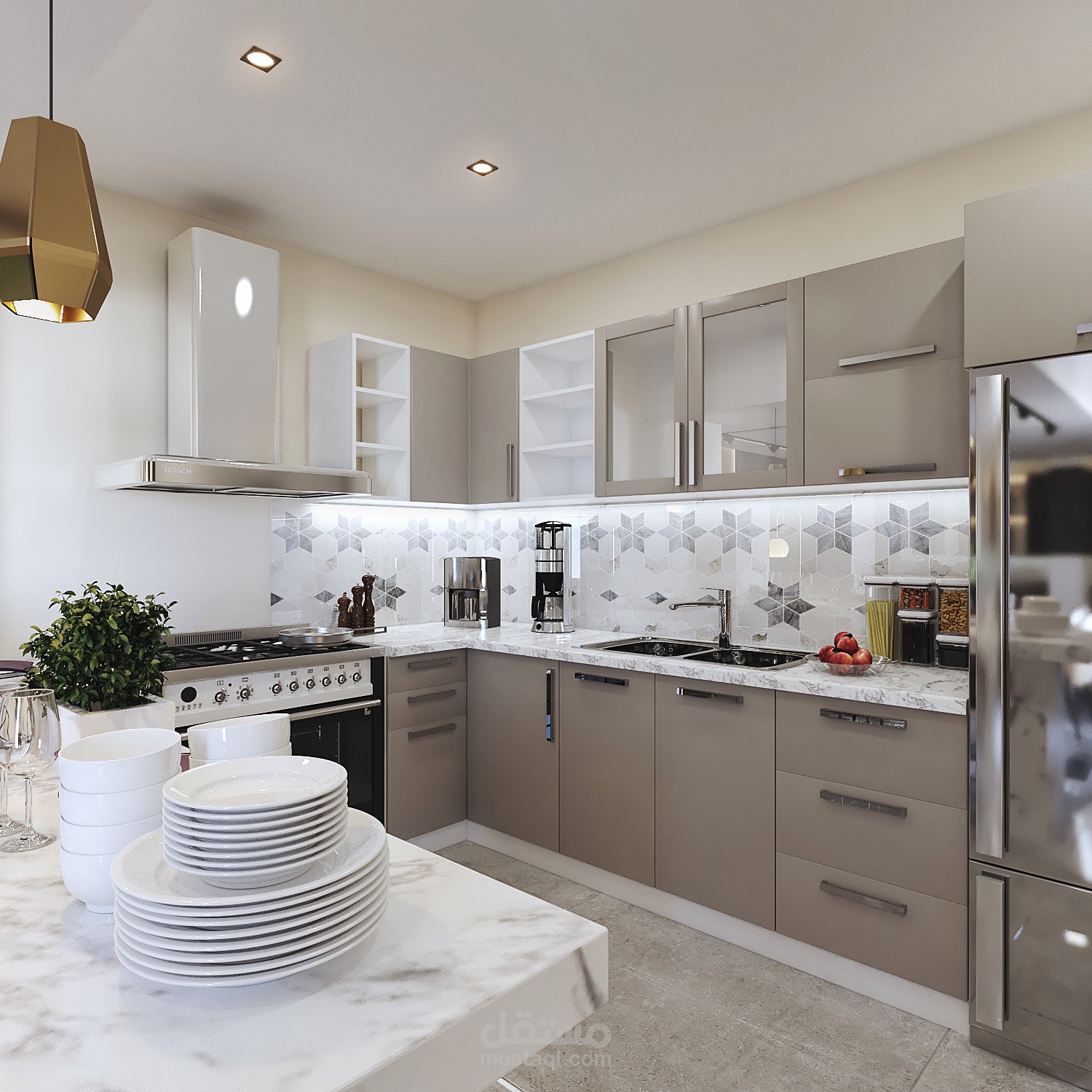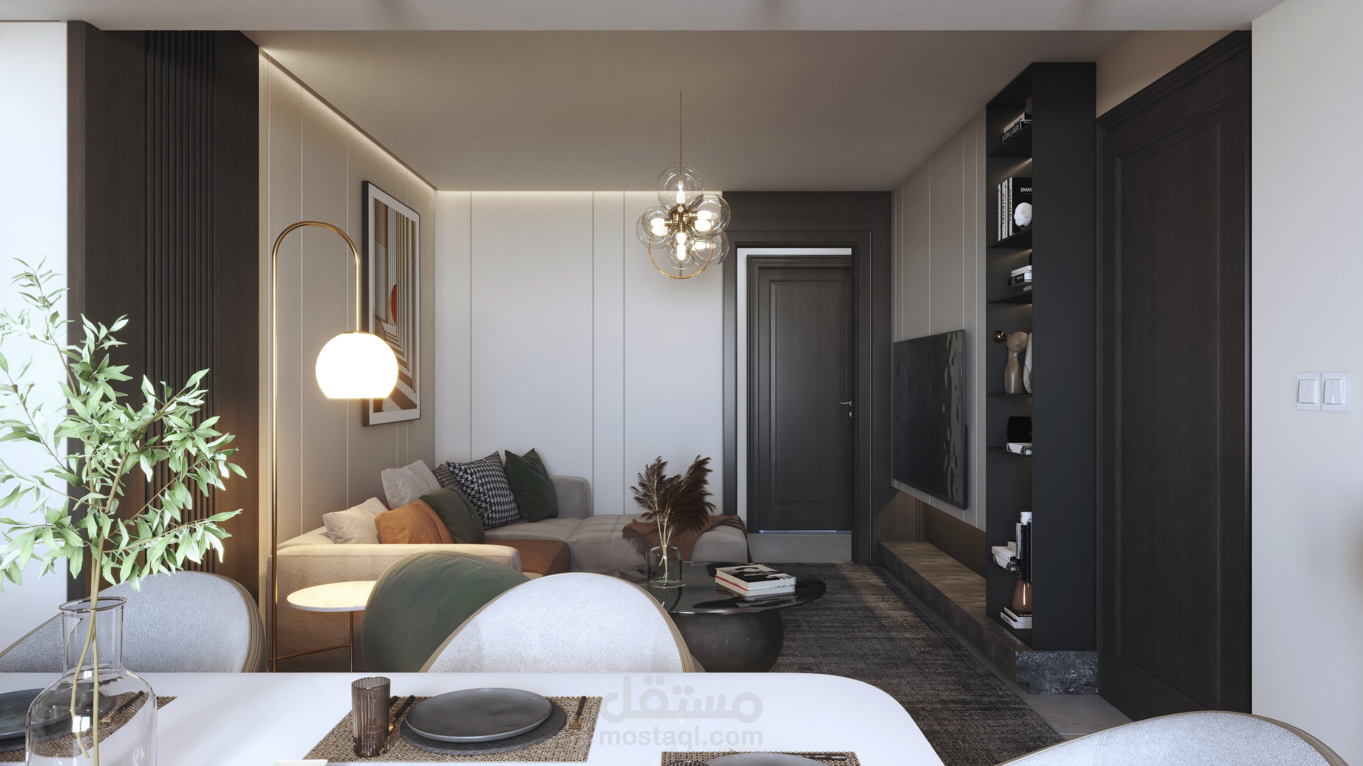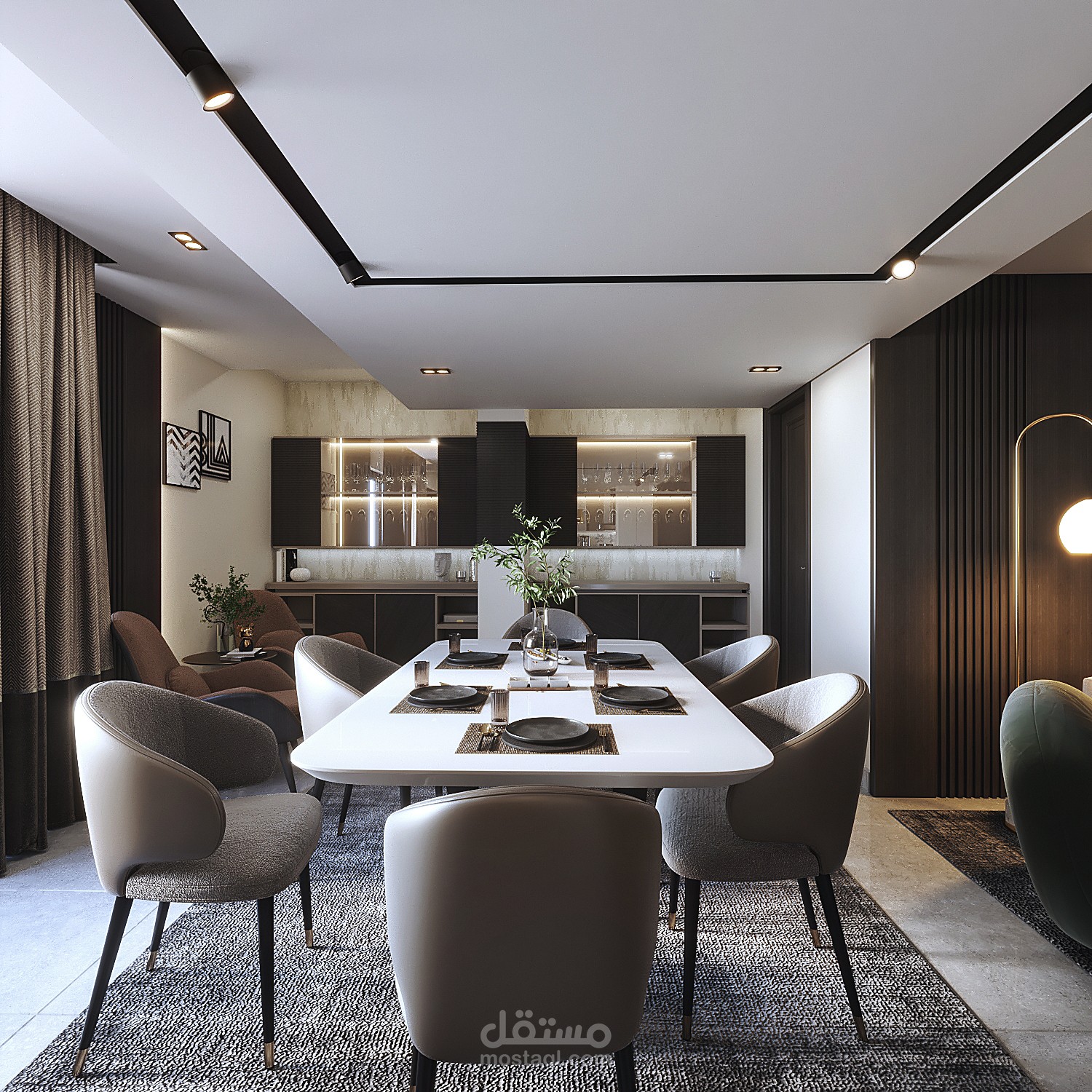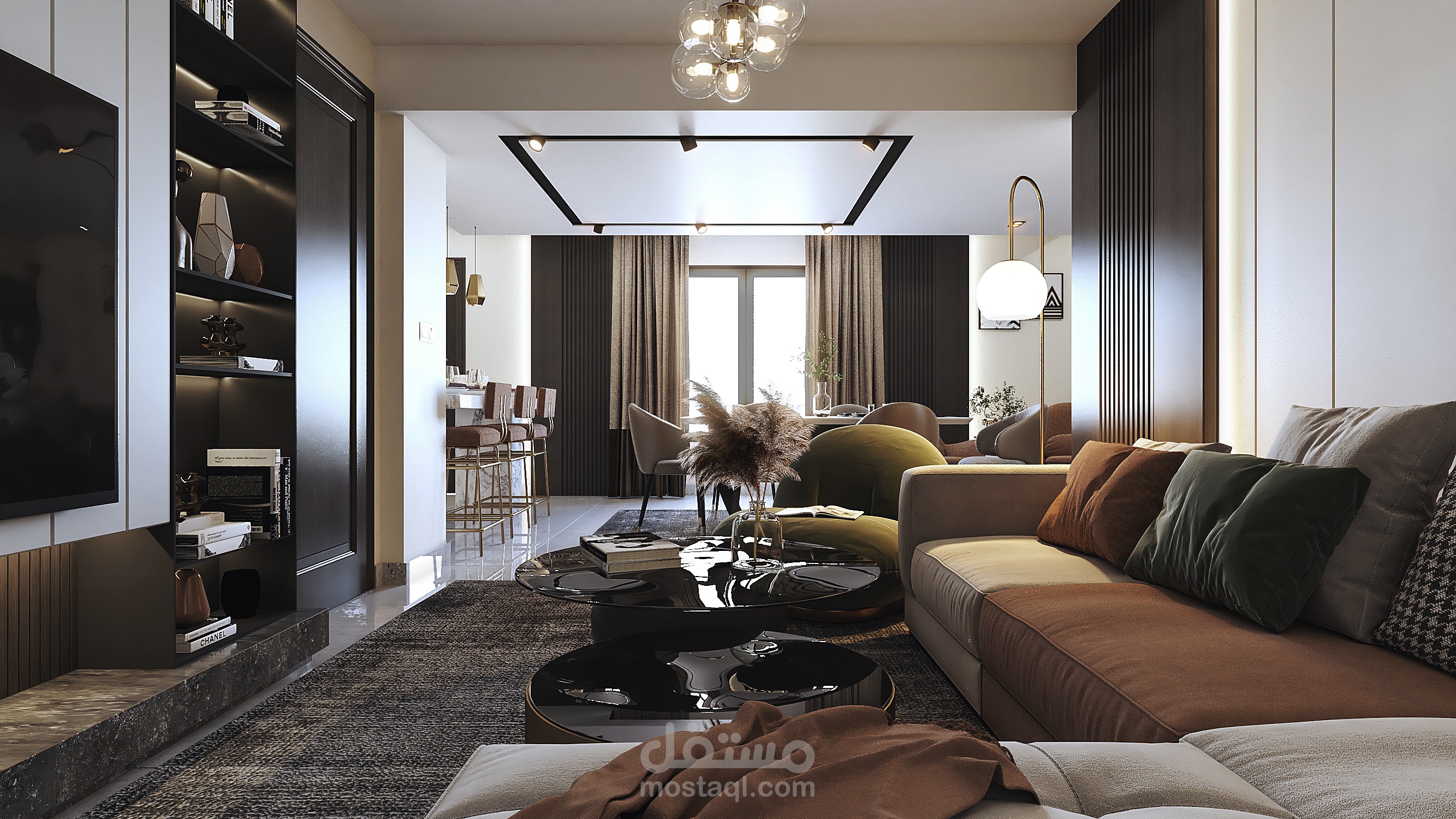 Contemporary modern living, dining & kitchen