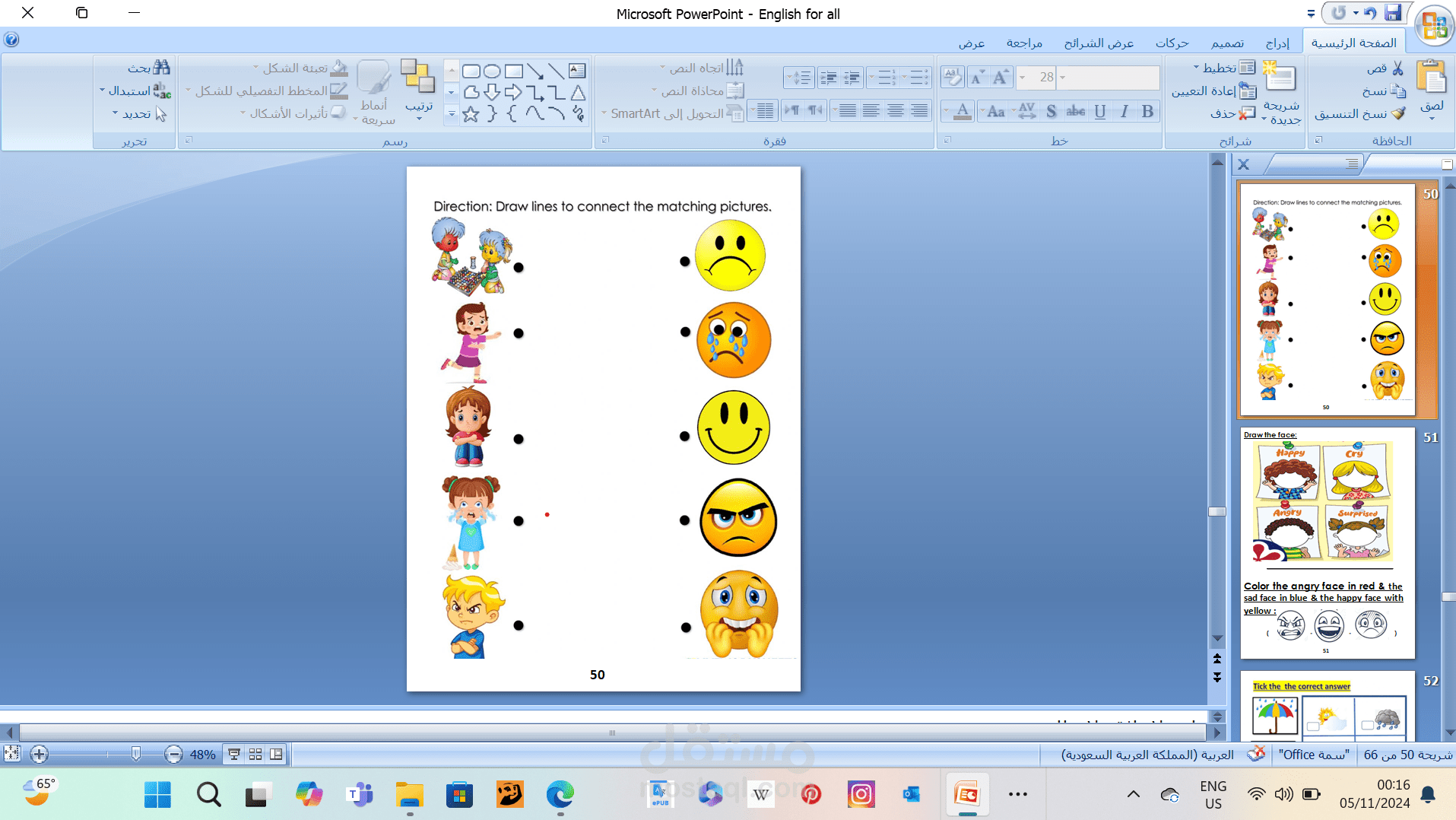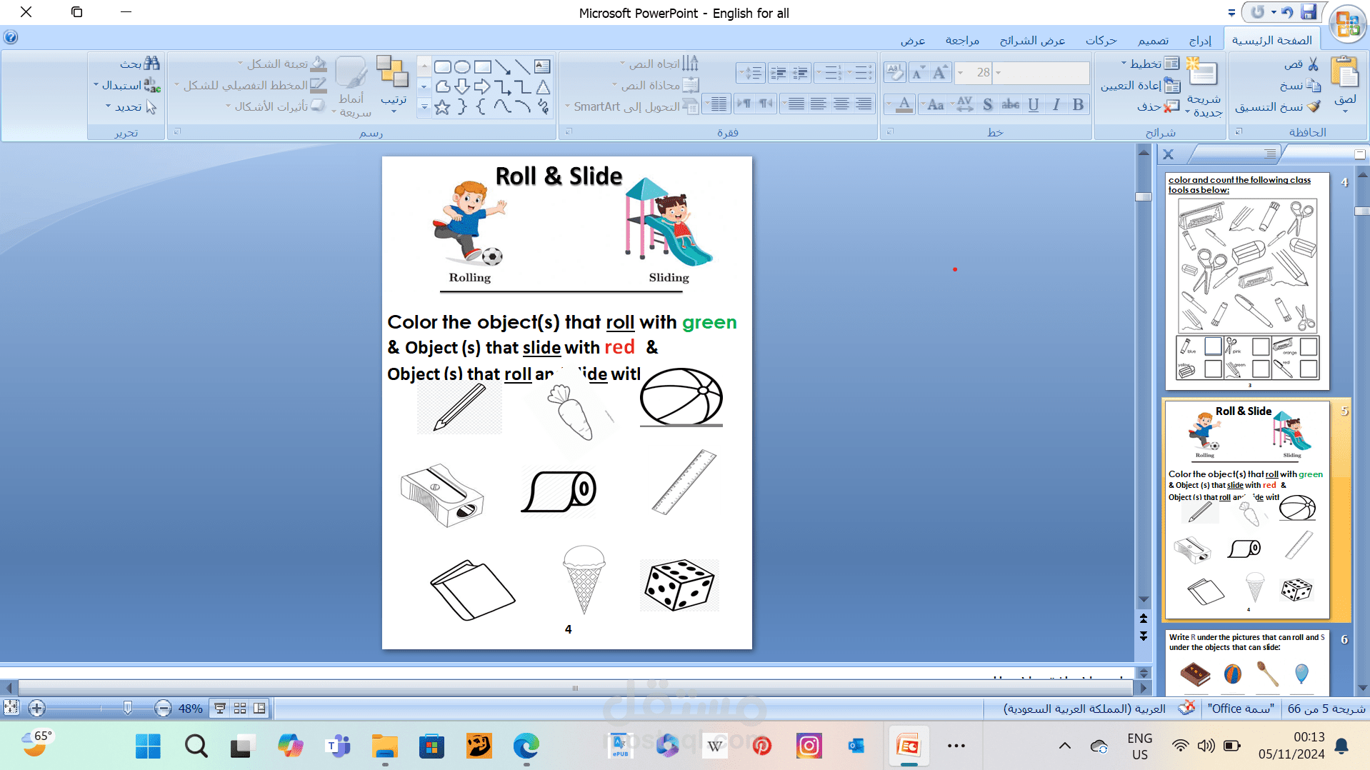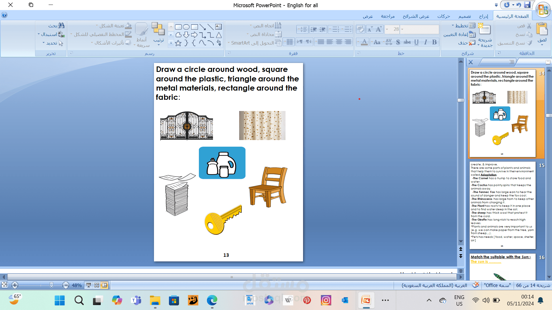 إنشاء الشرائح: صمم شرائح بسيطة وجذابة تحتوي على النصوص والصور التوضيحية لتعزيز المحتوى التعليمي.