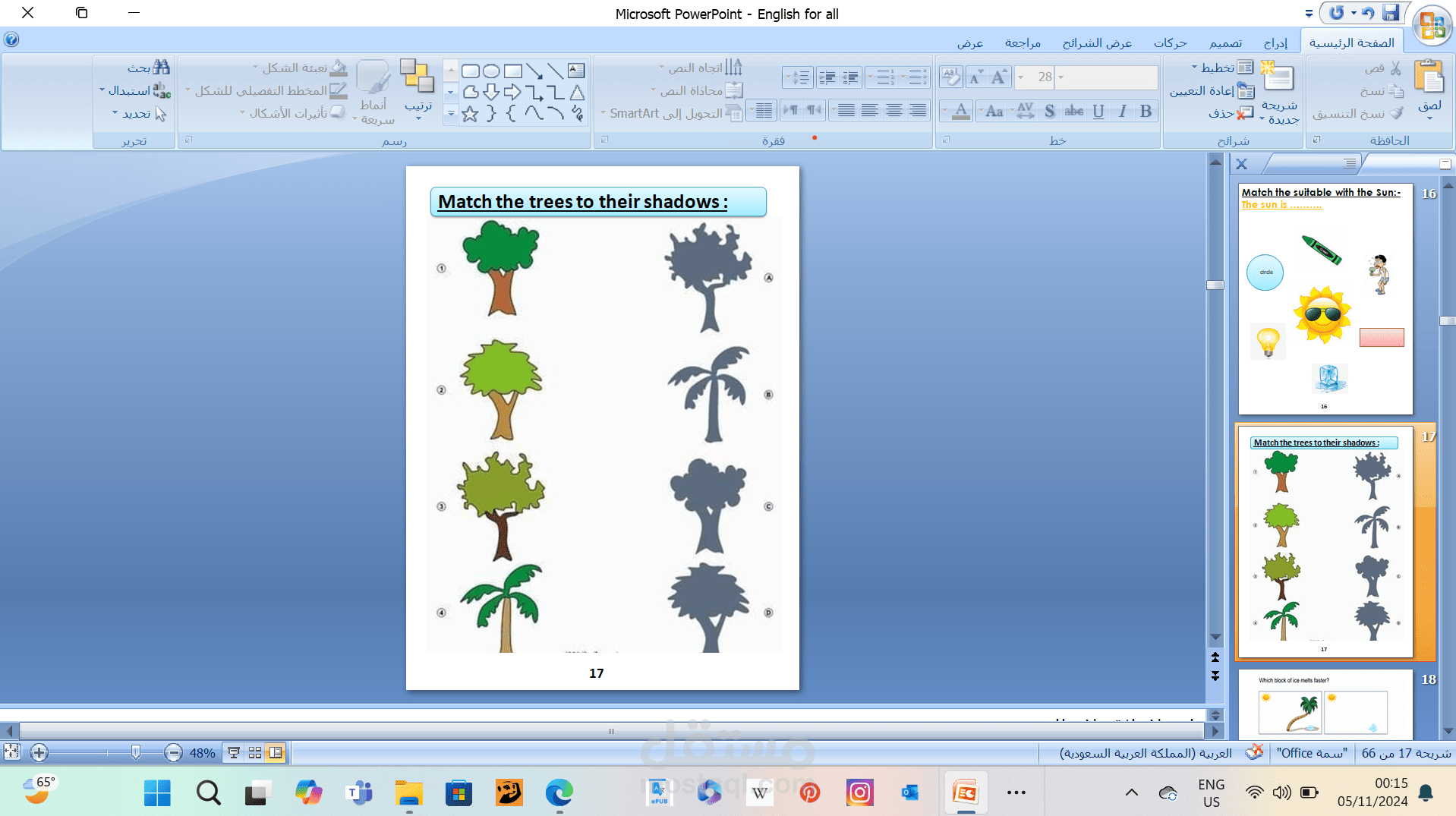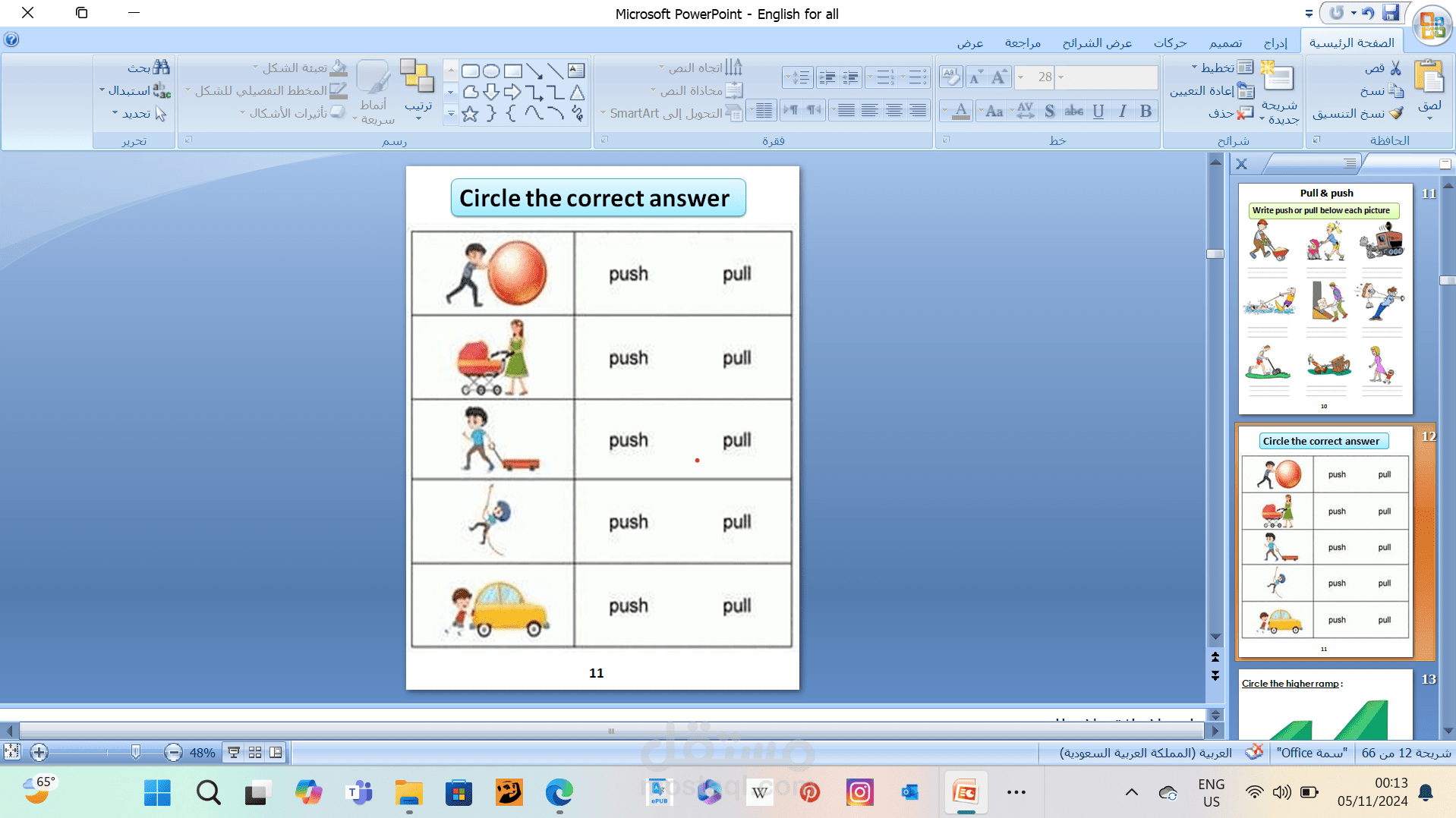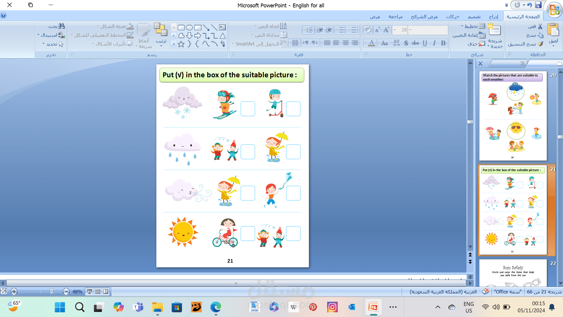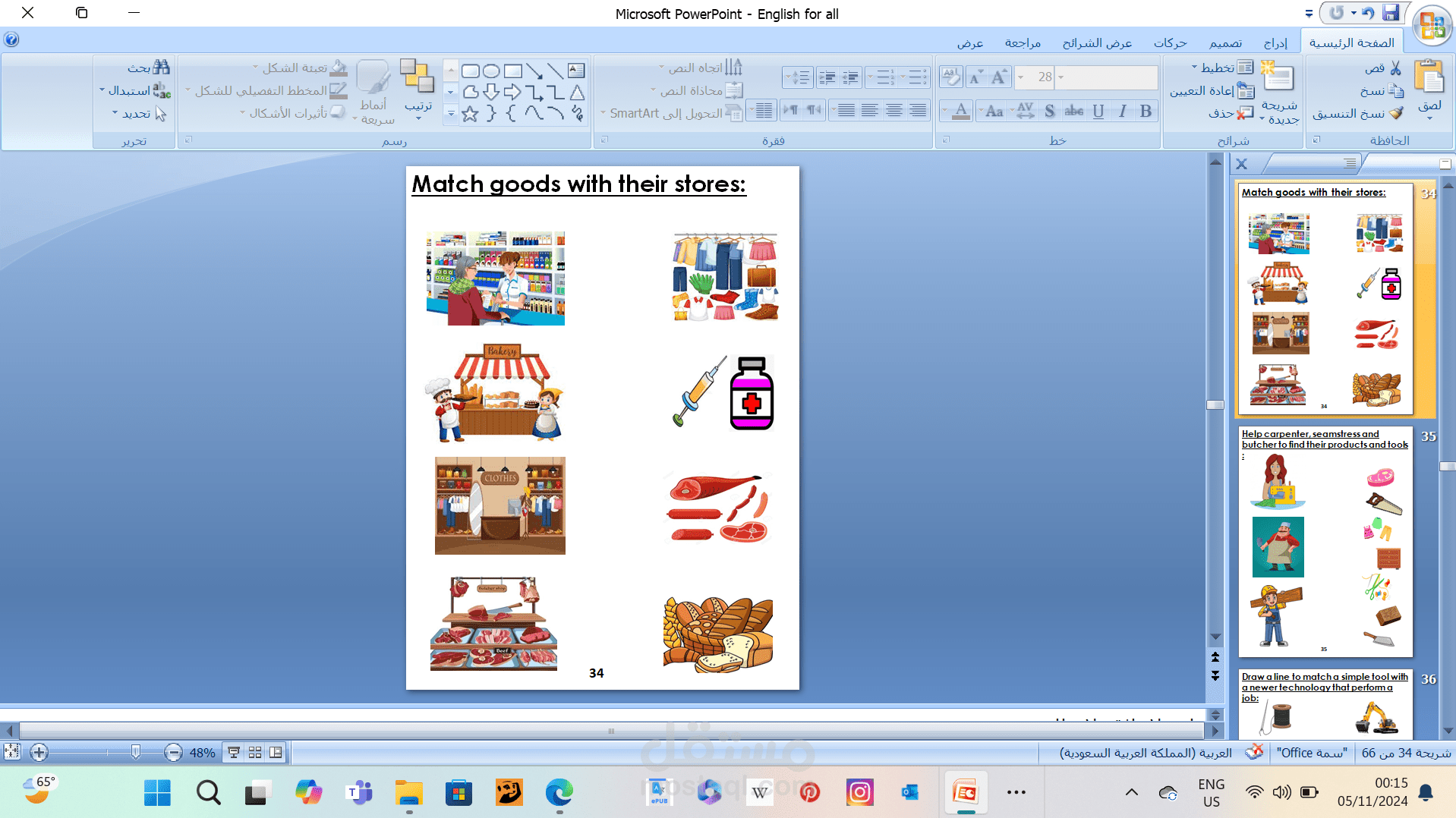 إنشاء الشرائح: صمم شرائح بسيطة وجذابة تحتوي على النصوص والصور التوضيحية لتعزيز المحتوى التعليمي.