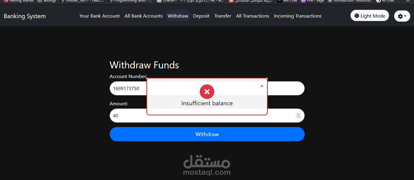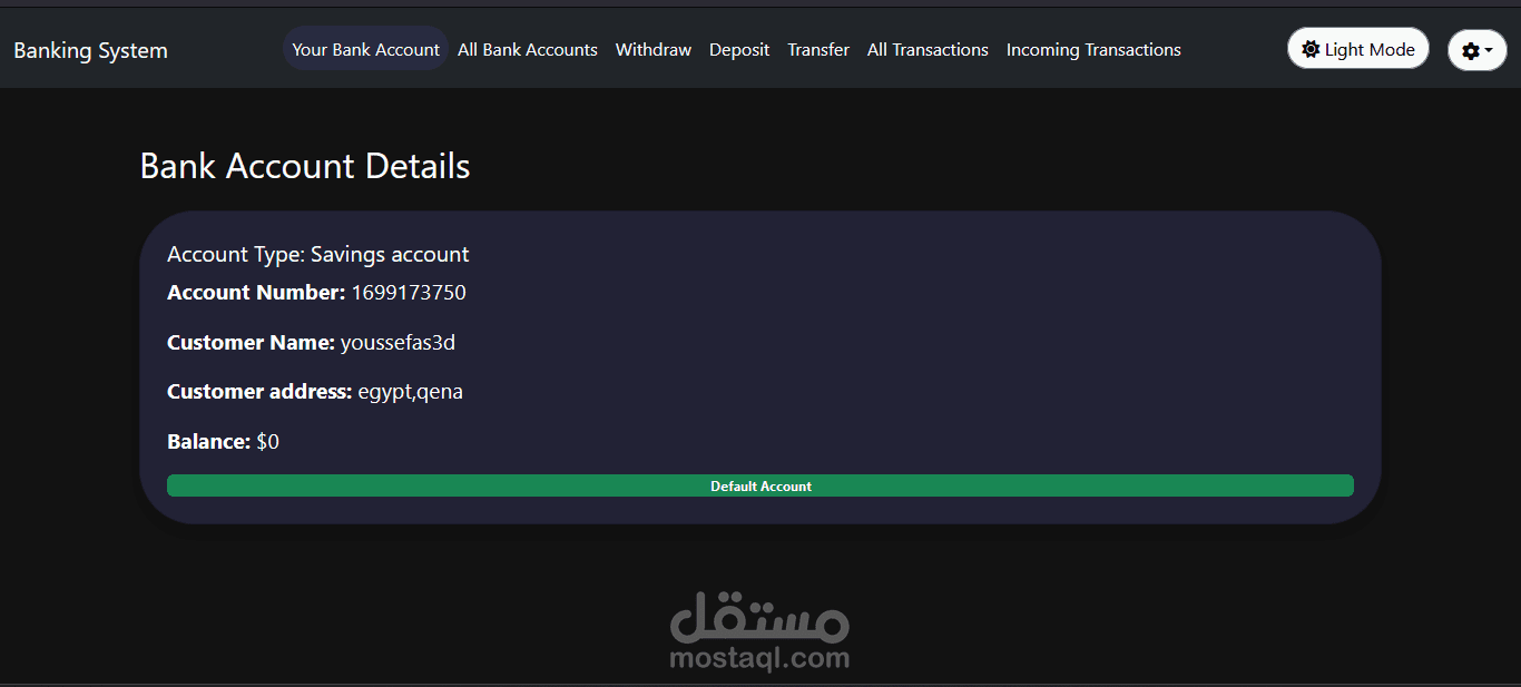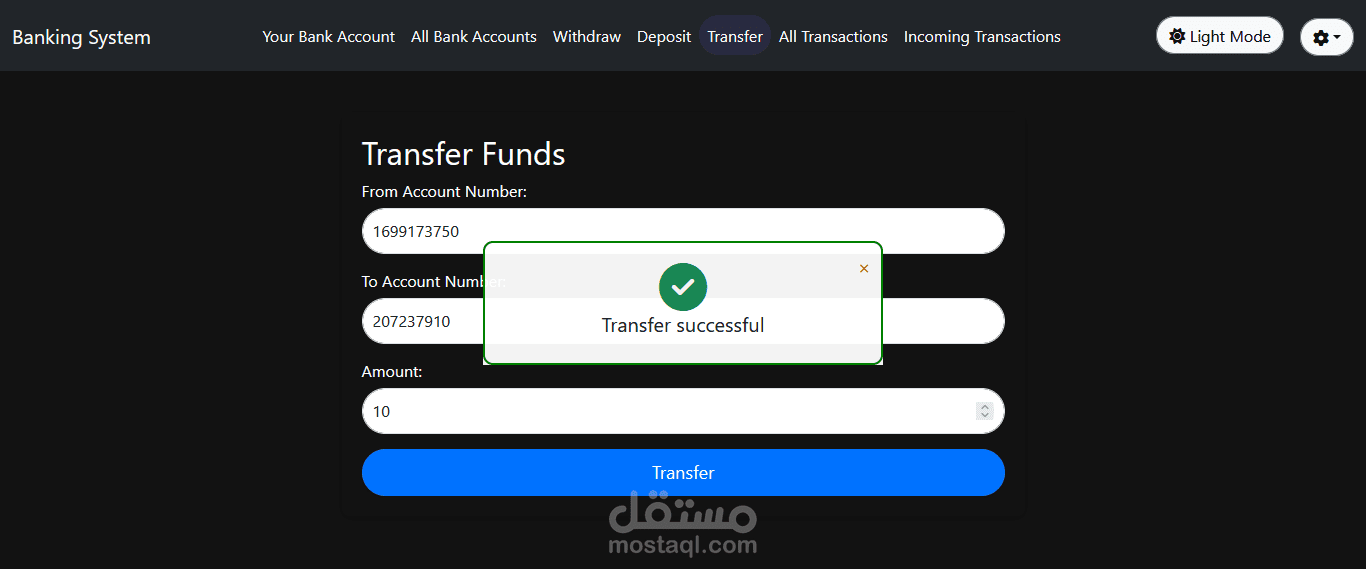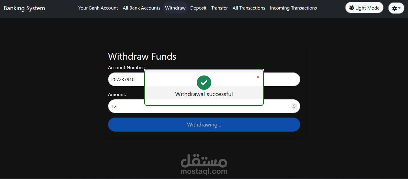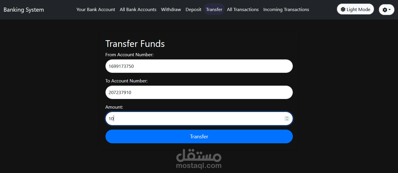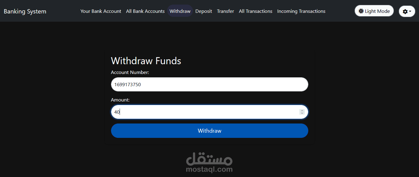 نظام البنك الإلكتروني هو منصة شاملة لإدارة الحسابات البنكية بسهولة وأمان. يتيح للمستخدمين فتح حساب بنكي جديد بسرعة وسهولة عبر الإنترنت، مما يوفر الوقت والمجهود. من خلال هذا النظام، يمكن للمستخدم إجراء عمليات السحب والإيداع مباشرة من حسابه، مع ضمان الأمان الكامل لكل معاملة. كما يمكنه تحويل الأموال بين حساباته الشخصية أو لأشخاص آخرين بنقرة واحدة فقط. بالإضافة إلى ذلك، يمكن للمستخدم الاطلاع على تفاصيل كل المعاملات السابقة والعمليات المالية بمنتهى الشفافية، بما في ذلك معرفة من قام بتحويل الأموال إليه، مما يساعده على تتبع حساباته بسهولة. النظام مصمم ليكون بسيط وسريع ويوفر تجربة مصرفية رقمية مريحة وحديثة.