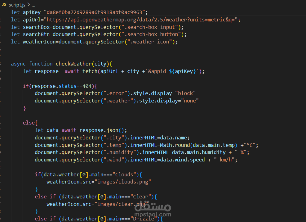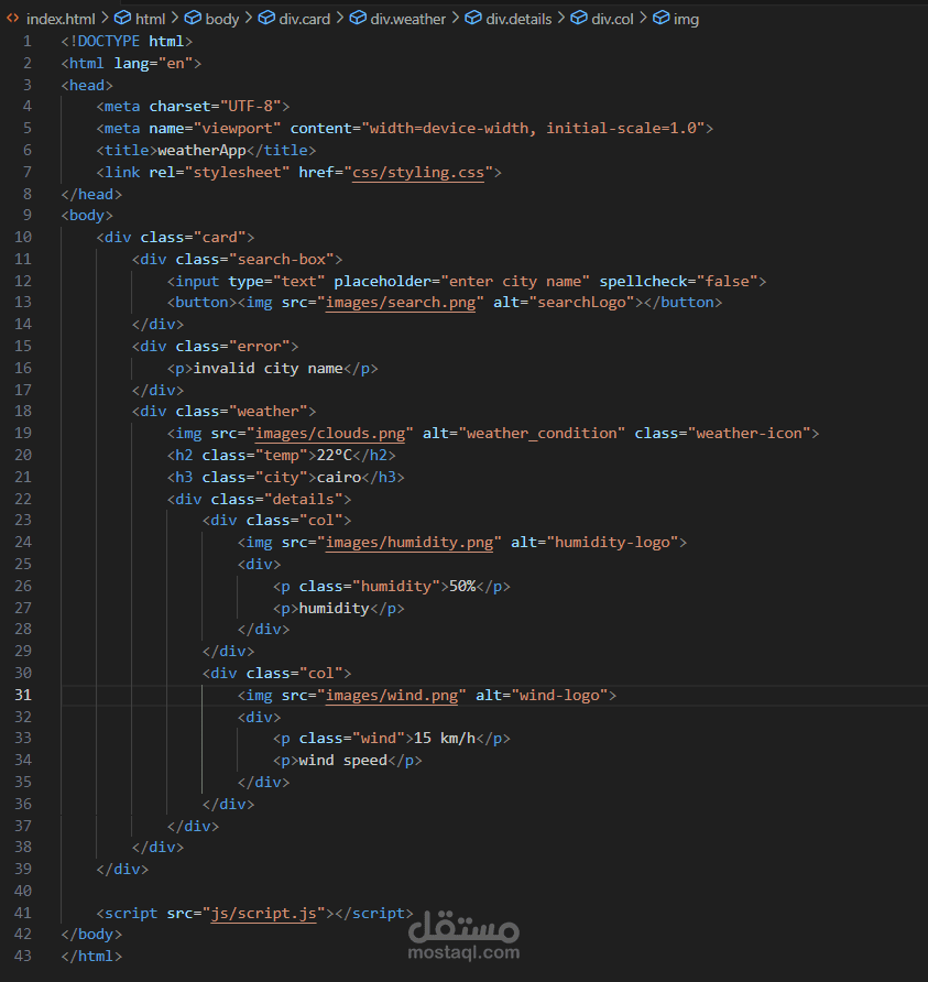 an application for weather prediction.I designed it using html and css to make the structure of it and how it looklike.I used JavaScript to get data from API and display it in the application