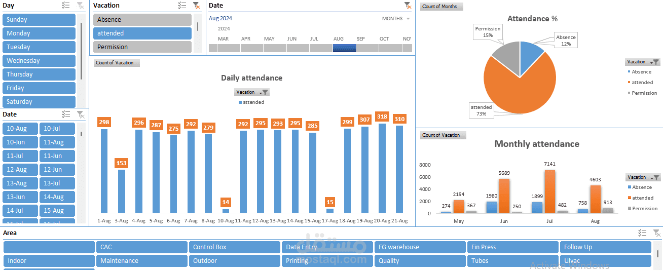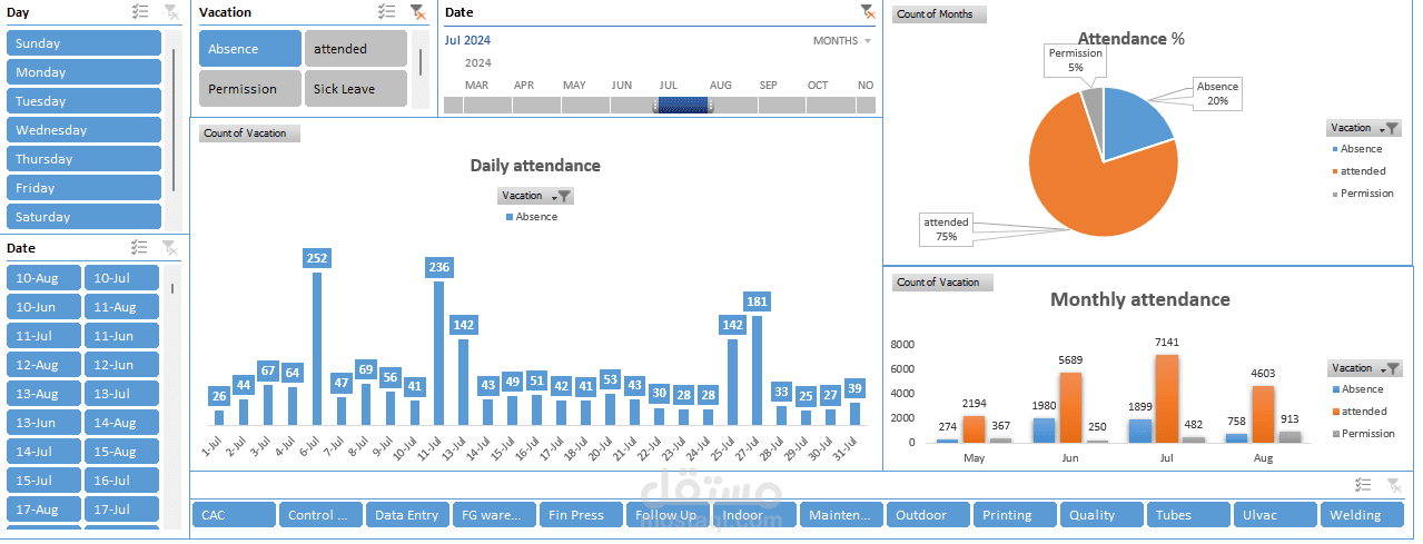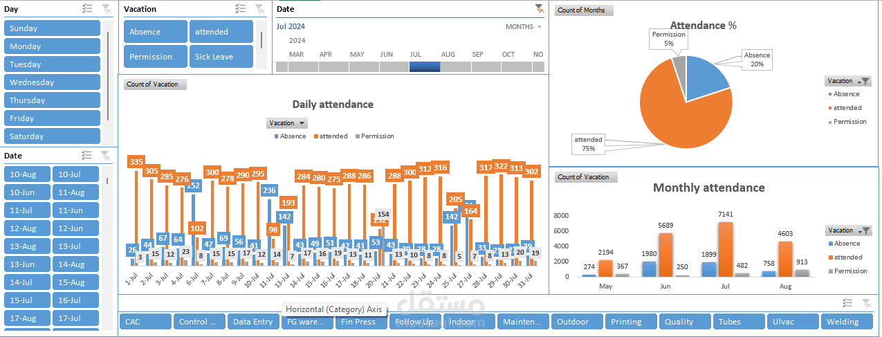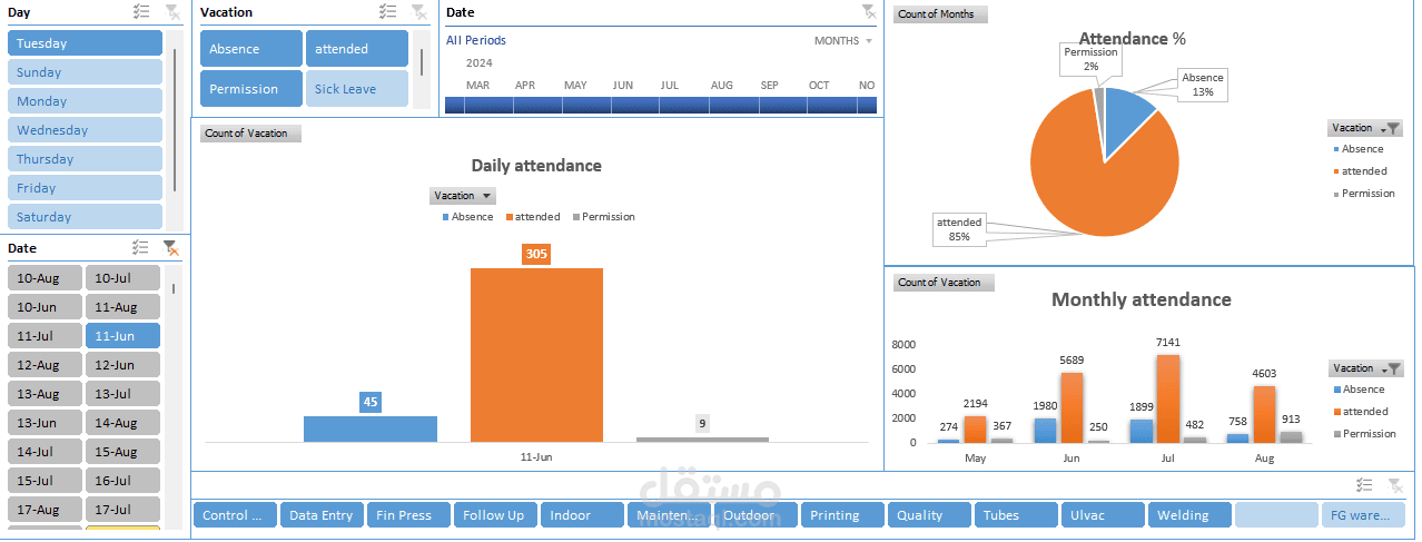 Attendance analysis for AC factory labour using Excel, Power Query and dashboards