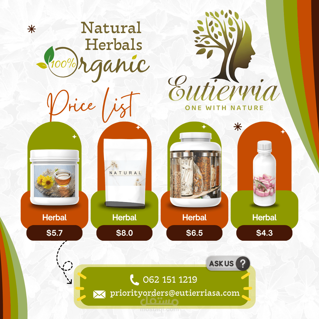 نموذج بالحجم الطبيعي لمتجر إلكتروني على موقع لبيع المنتجات العشبية ويجب أن يبدو جذابًا وحيويًا مع الألوان ومتباينًا عند النظر إلى المنتجات.