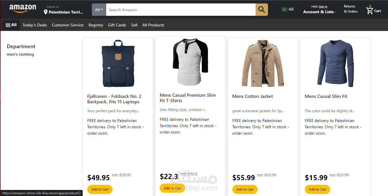 مشروع نسخ أمازون هو عبارة عن منصة إلكترونية تم تطويرها بهدف تقديم تجربة تسوق مشابهة لموقع أمازون الشهير. تم إنشاء هذا المشروع كجزء من التدريب العملي لتعزيز المهارات في تصميم وتطوير المواقع الإلكترونية، مع التركيز على الاستخدام الأمثل لتقنيات حديثة مثل React وNode.js.