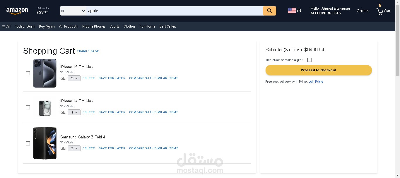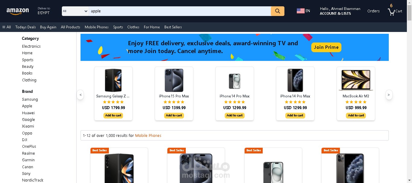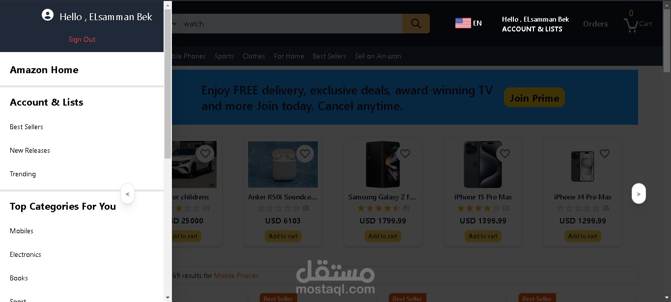 قمت بتطوير منصة تجارة إلكترونية احترافية شبيهة بأمازون باستخدام أحدث التقنيات في الواجهة الأمامية والخلفية. اعتمدت على Next.js وTailwind CSS وMUI وRedux UI لتوفير تصميم جذاب وسريع الاستجابة. وللتعامل مع البيانات، استخدمت Axios، وتم ربط النظام بقاعدة بيانات MongoDB من خلال واجهة RESTful API مبرمجة باستخدام NestJS. يهدف هذا المشروع لتقديم أداء عالي وسهولة في الاستخدام للمستخدمين ولإدارة العمليات التجارية بكفاءة.