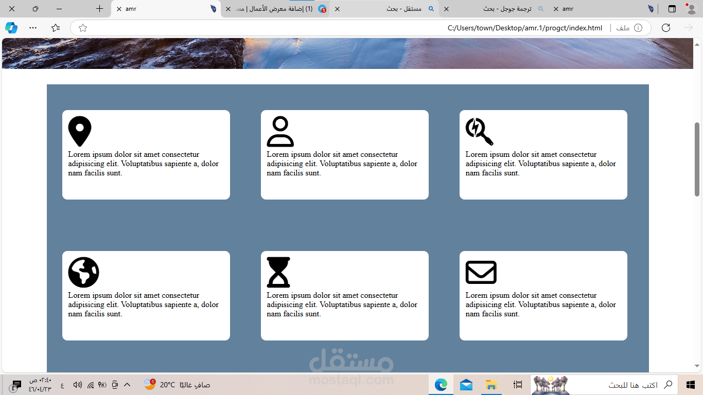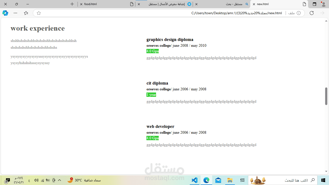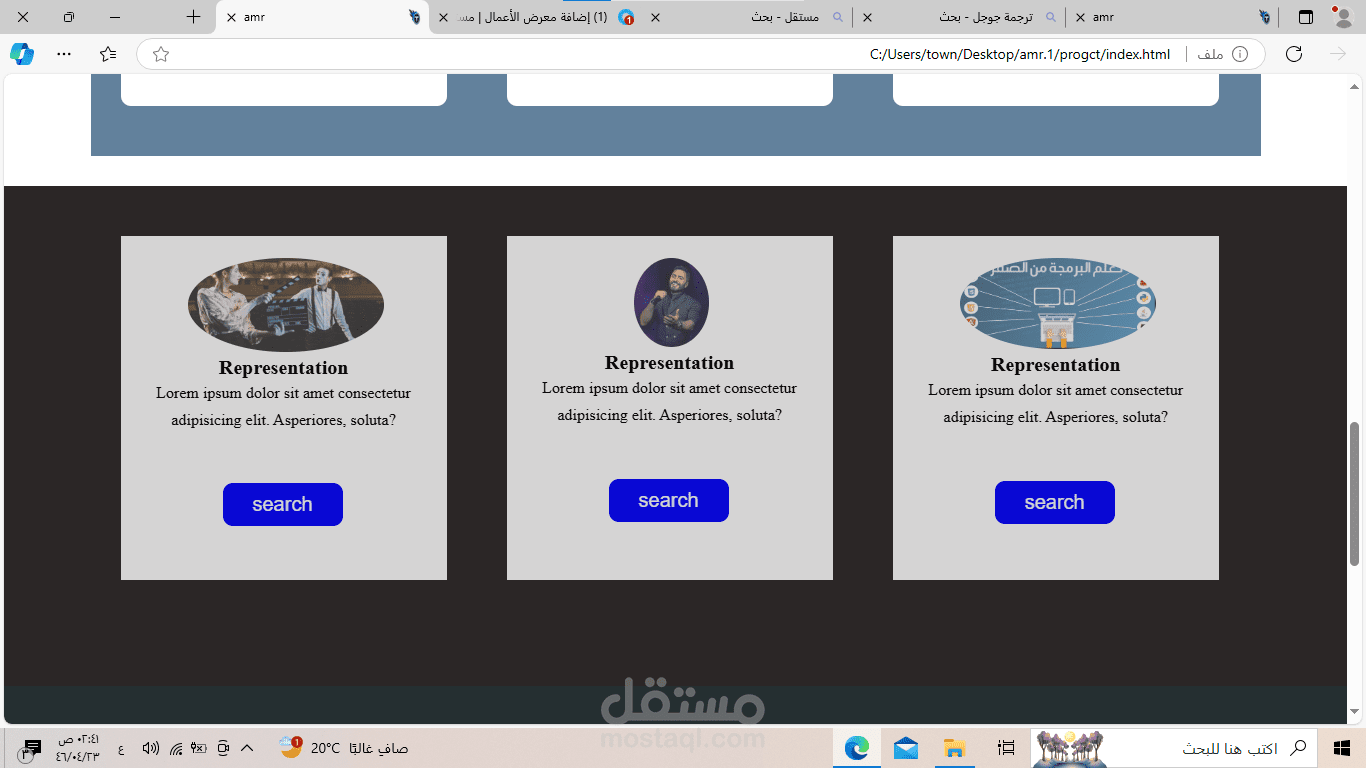 ده اول موقع انشاته لما كنت بتعلم في ال html و ال css وكان الموقع بيتكلم عن wep design بس الموقع انا ما كتبتش في حاجات كثيره وكان الموقع واحد طلبوا مني في خلال ثلاث ايام انا سلمته قبل الموعد المحدد في يومين وكان الموقع بيتكلم عن wep design والاحصائيات و عن اهدافك و انجازاتك وعن شخصيتك اتعلمت في هذا الموقع التصميم الابداعي والكتابه الابداعي وكيف اظبط الصوره و تعلمت كيف اعمل التخطيط البياني ولو اي شخص كان محتاج مساعده كان بيتواصل معايا