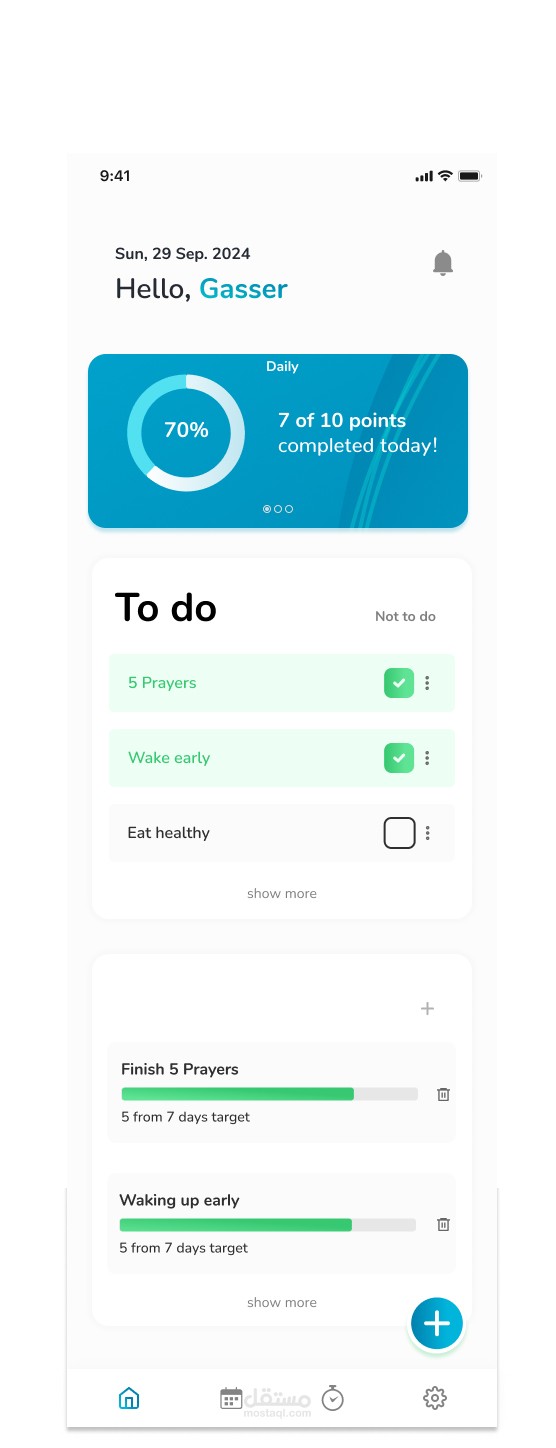 تتبع العادات والمهام: تصميم واجهة بصرية لمتابعة التقدم اليومي بسهولة.
