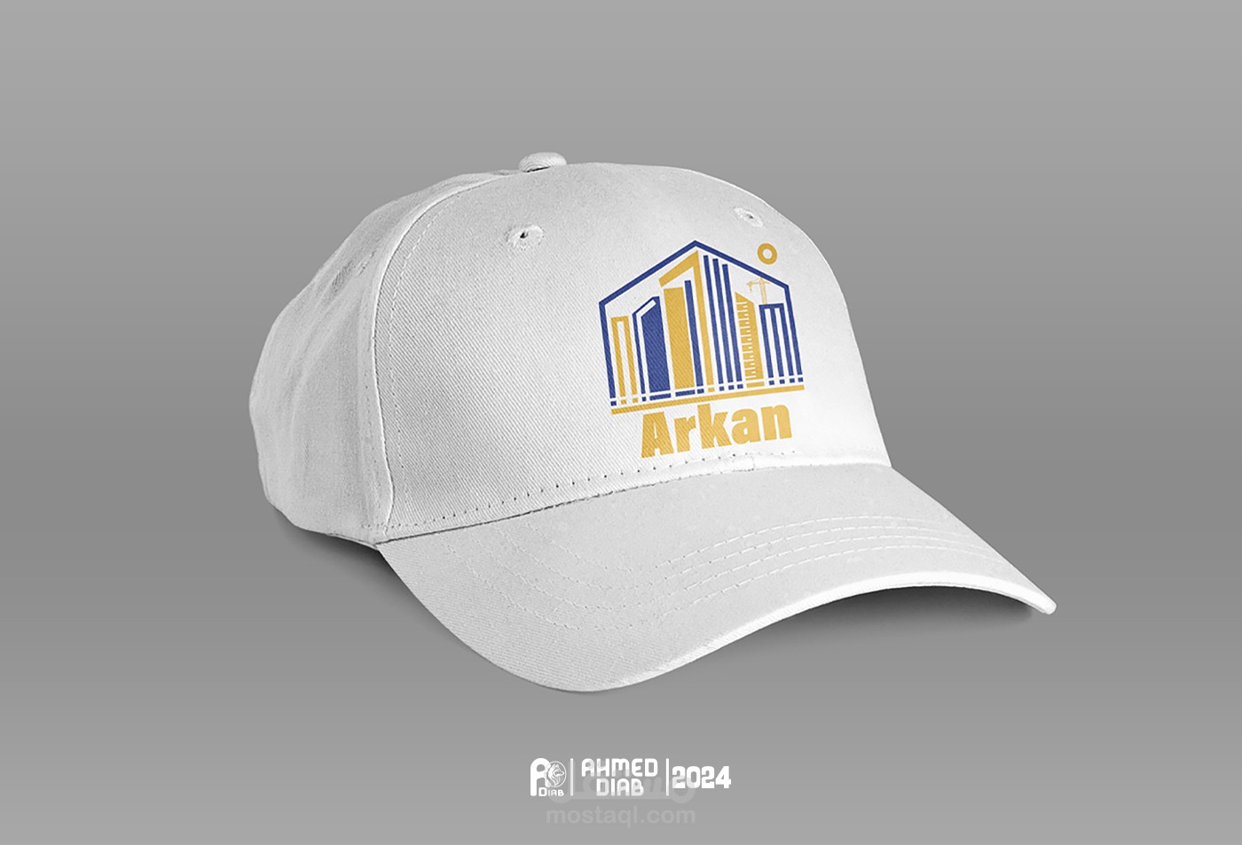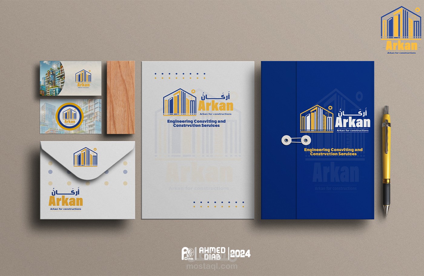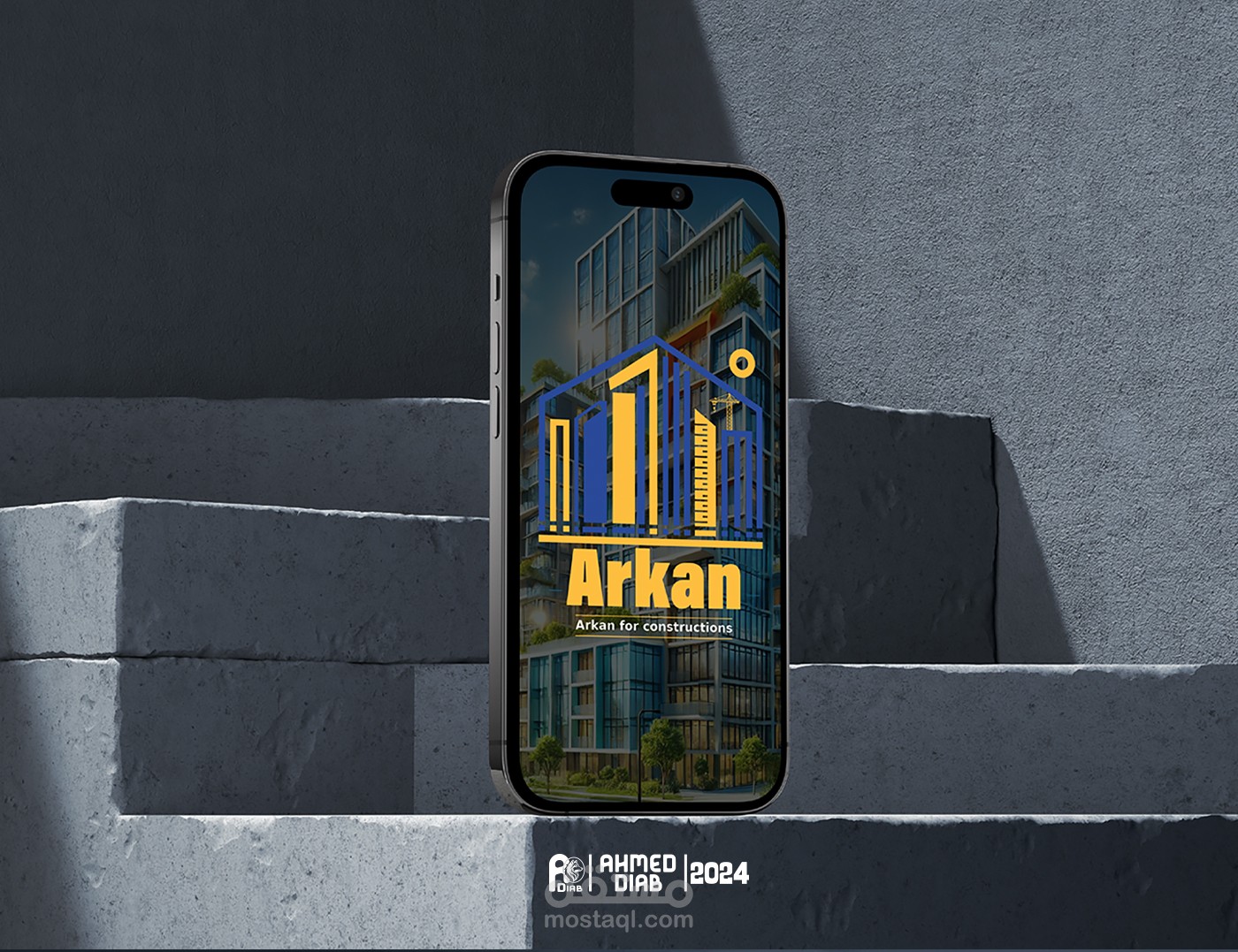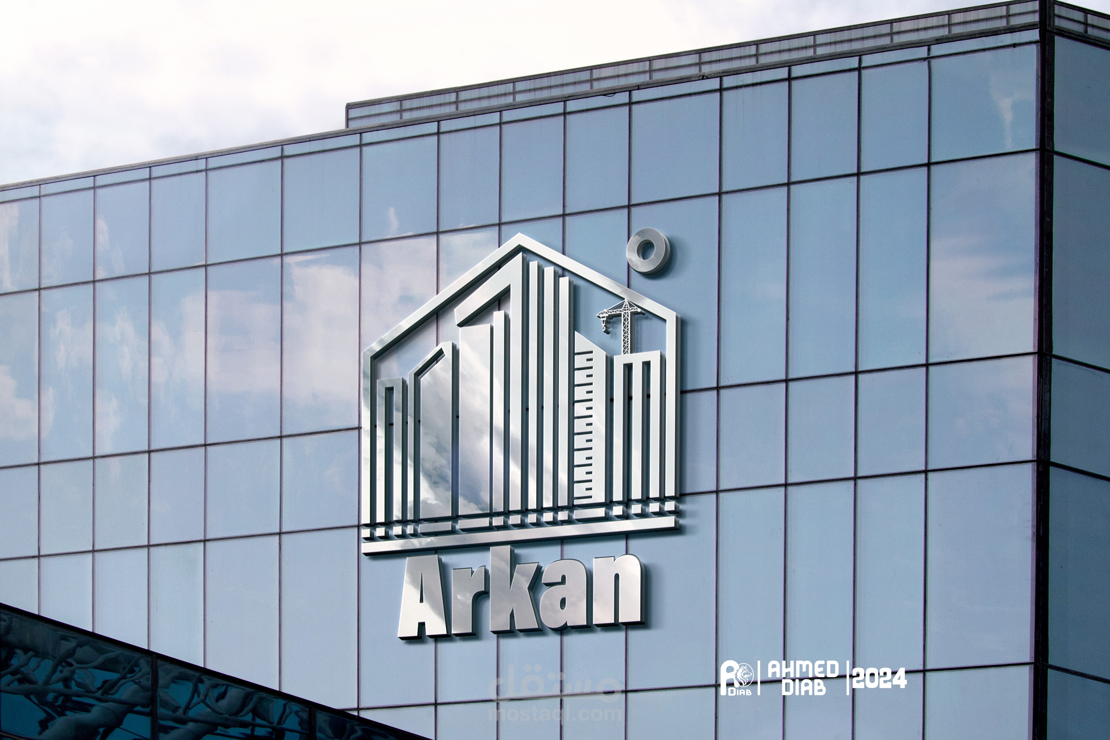 اسم الشركة "Arkan" يظهر بخط كبير وباللون البرتقالي، مما يجعله بارزًا ويجذب الانتباه.