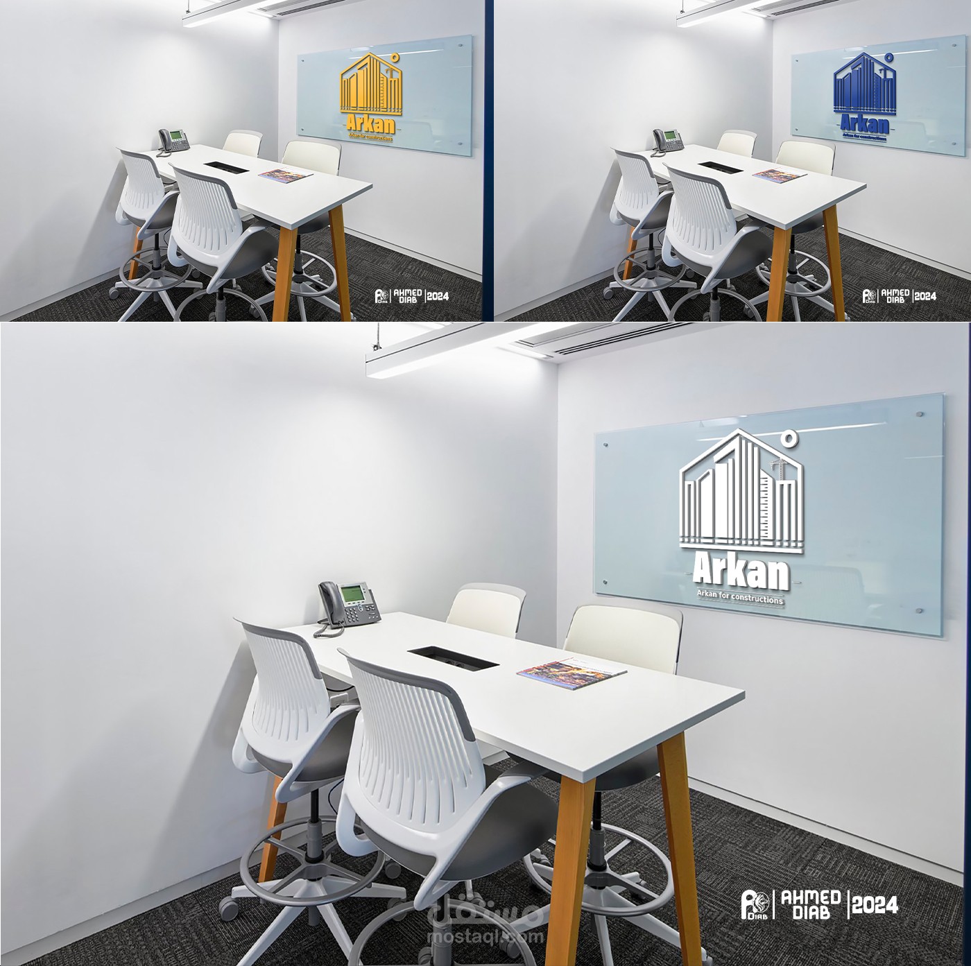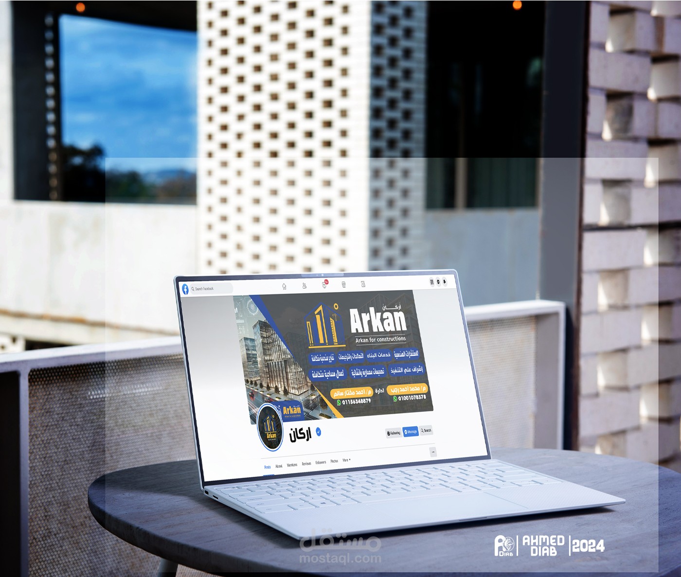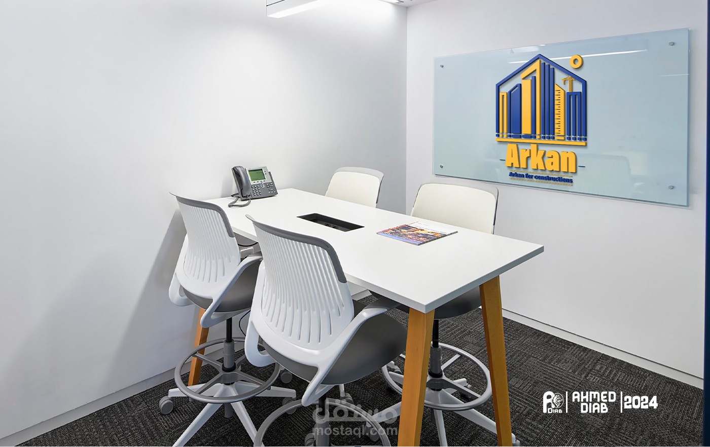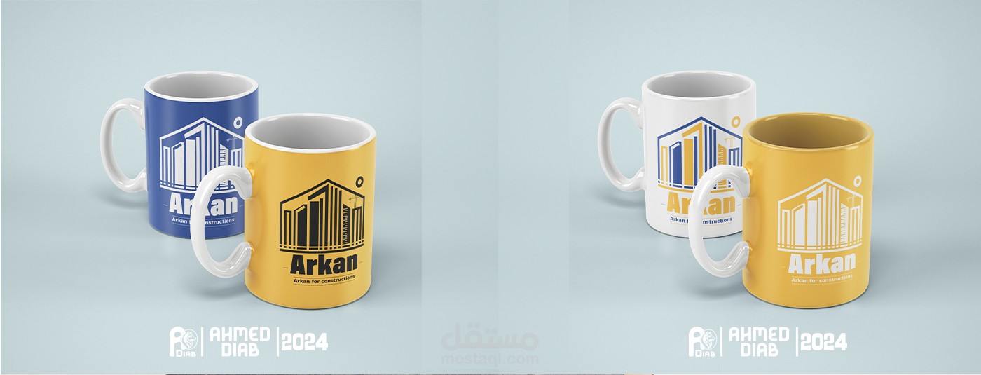 اسم الشركة "Arkan" يظهر بخط كبير وباللون البرتقالي، مما يجعله بارزًا ويجذب الانتباه.