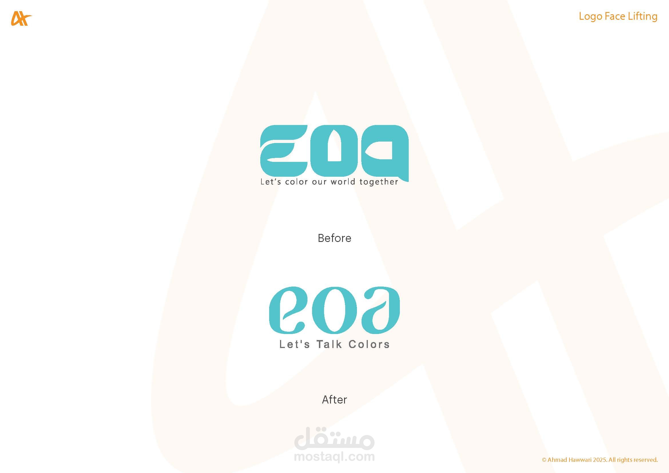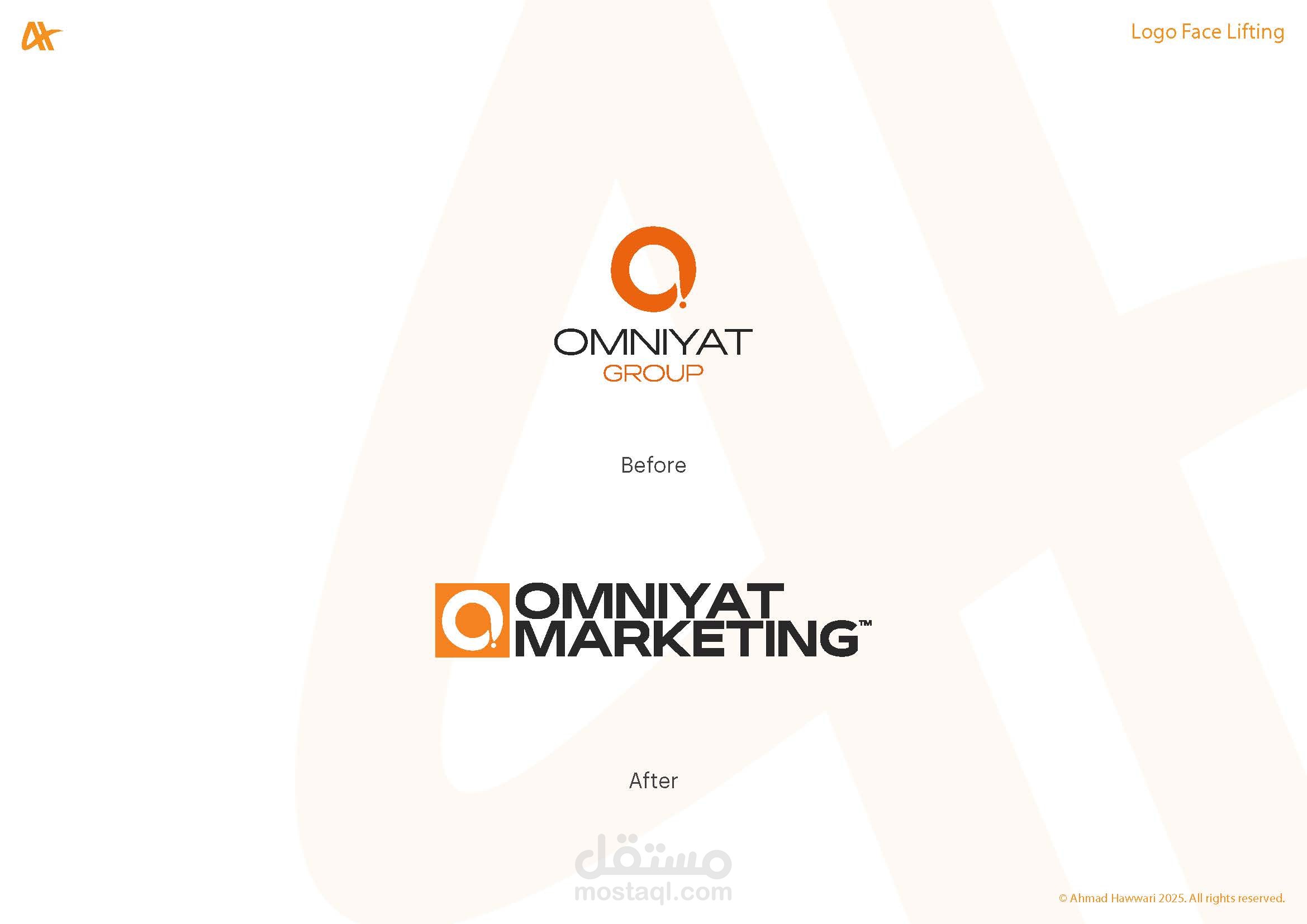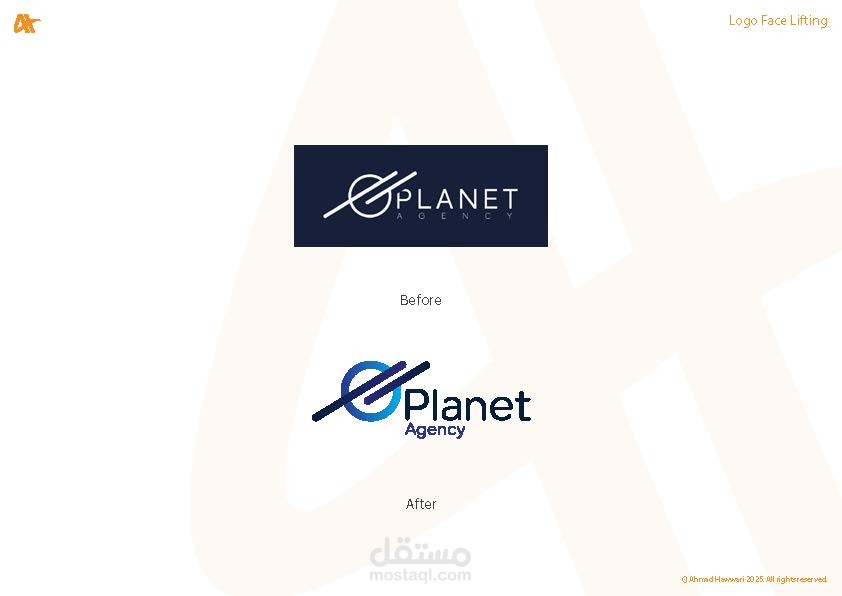 قسم "Logo Face Lifting" يضم أعمال إعادة تصميم وتحديث الشعارات القائمة لمنحها مظهرًا عصريًا واحترافيًا. الهدف من كل تصميم هو تحسين وضوح الشعار، تعزيز هوية العلامة التجارية، وإضفاء لمسة حديثة تتناسب مع الاتجاهات البصرية الحالية مع الحفاظ على التعرف الفوري على العلامة التجارية.