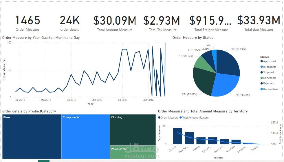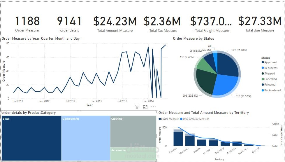 I created several measures to provide detailed insights into the sales data: