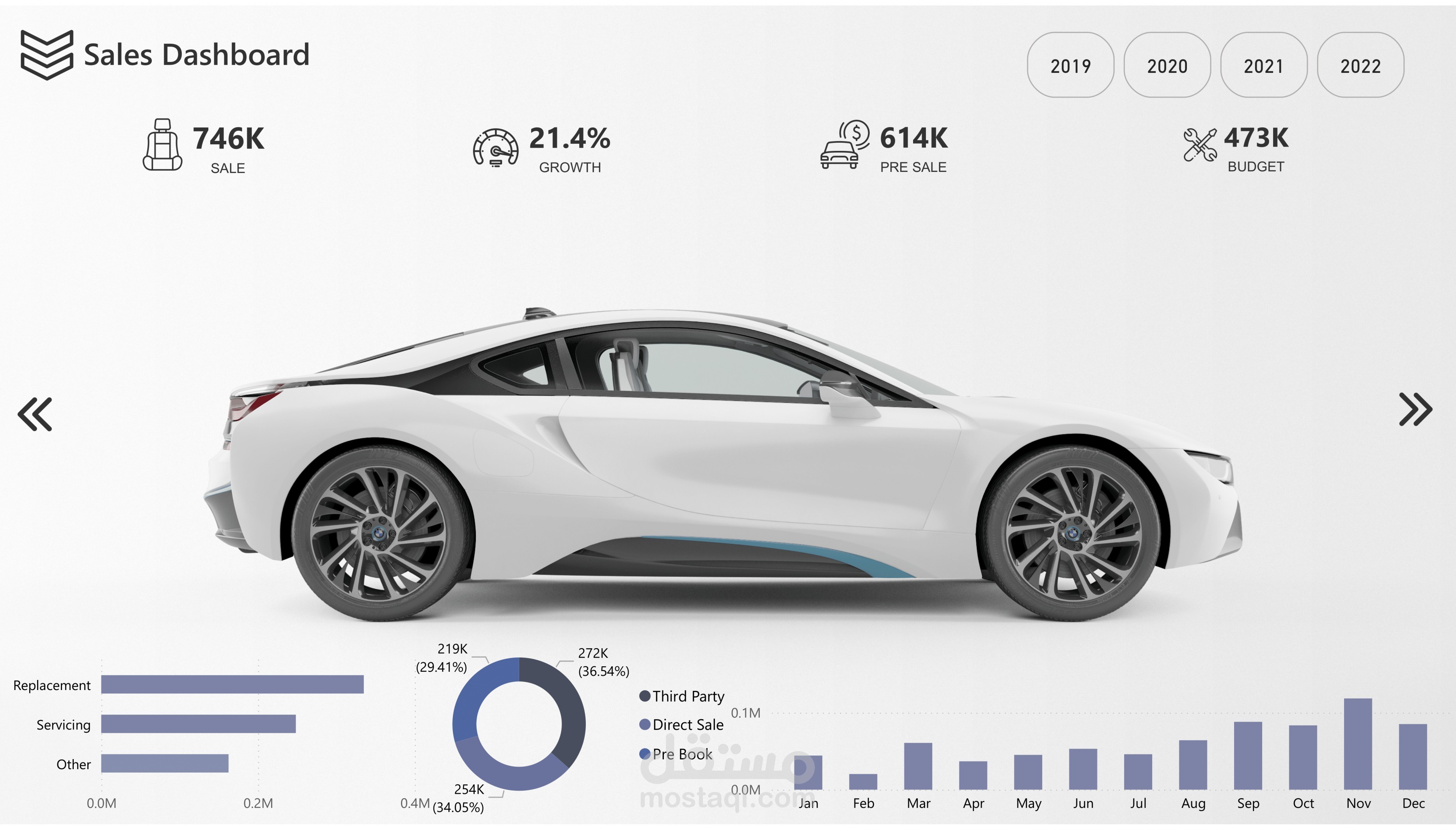 Category Breakdown: Detailed breakdown of car sales by service types (Replacement, Servicing, Other) to identify growth areas and customer needs.