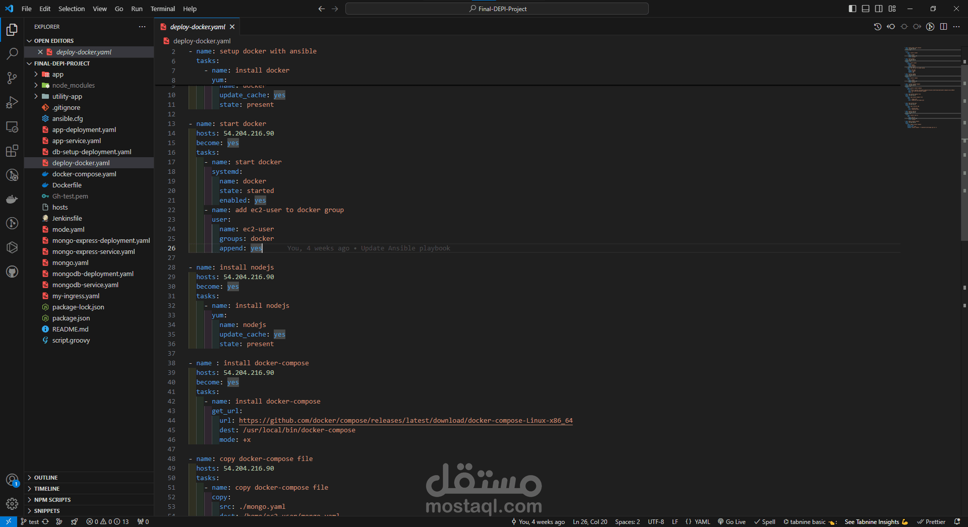 4.Configuration Management: Using tools like Ansible, the pipeline automates the provisioning and configuration of infrastructure. Ansible playbooks are utilized to set up the required environments, install necessary software, and deploy the Docker containers to the target servers.